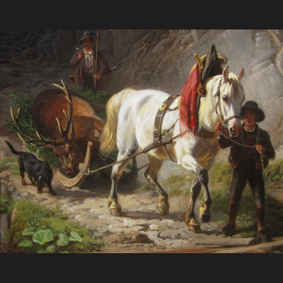 Karl LIESKE, Retour de chasse au cerf en montagne, tableau