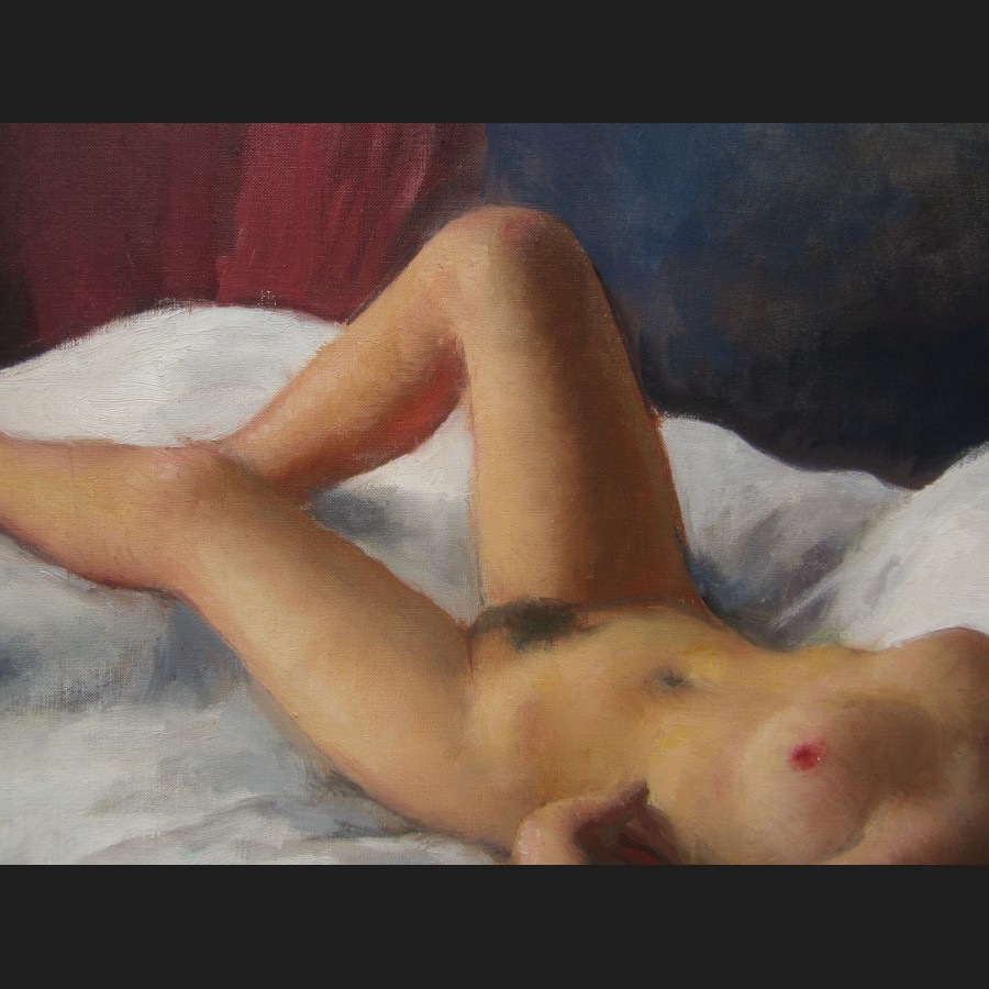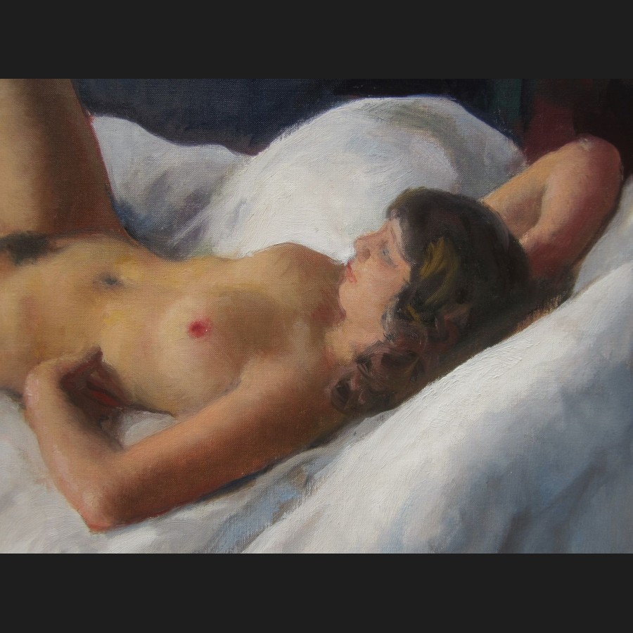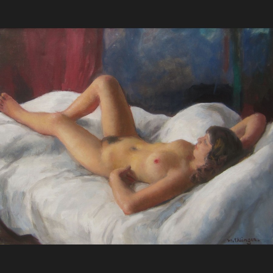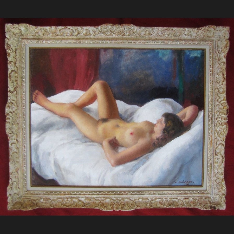 Maurice EHLINGER, Femme nue allongée sur un lit, tableau