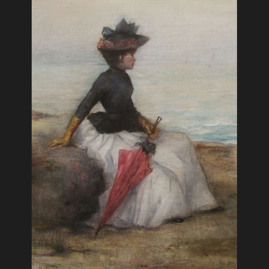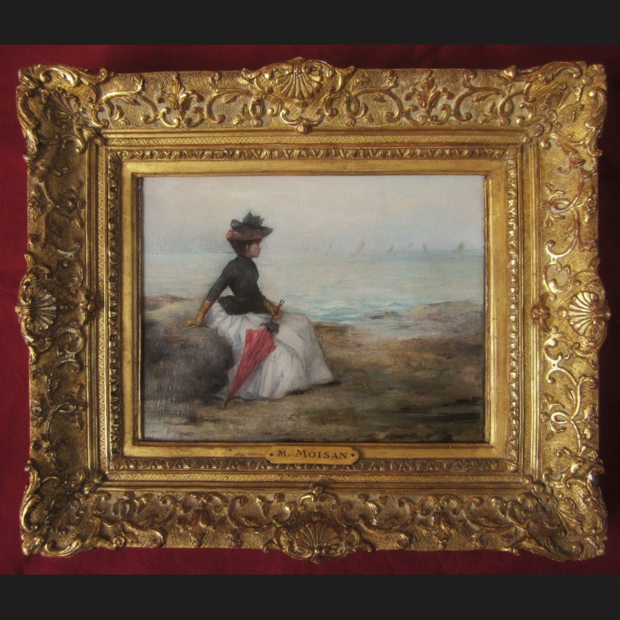 Maurice Émile MOISAND, Jeune femme regardant la mer (la régate), tableau