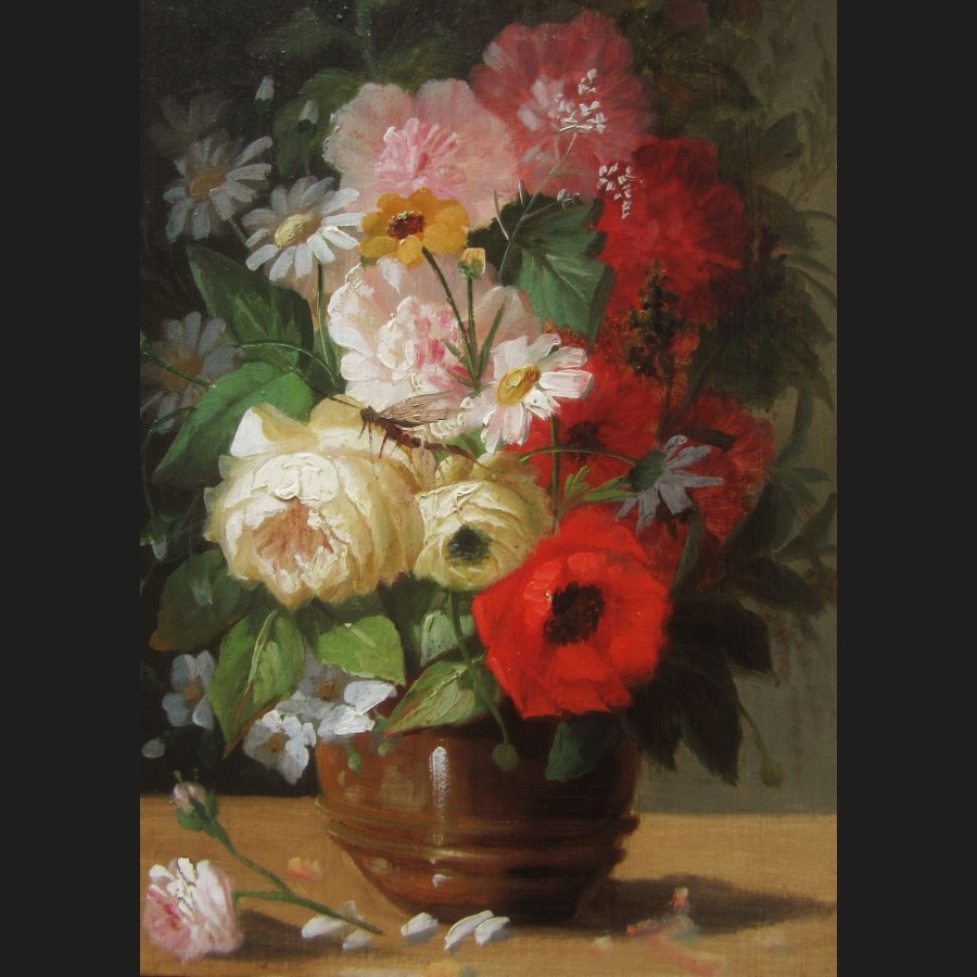 C. JULLIARD, Bouquet de fleurs sur une table, tableau