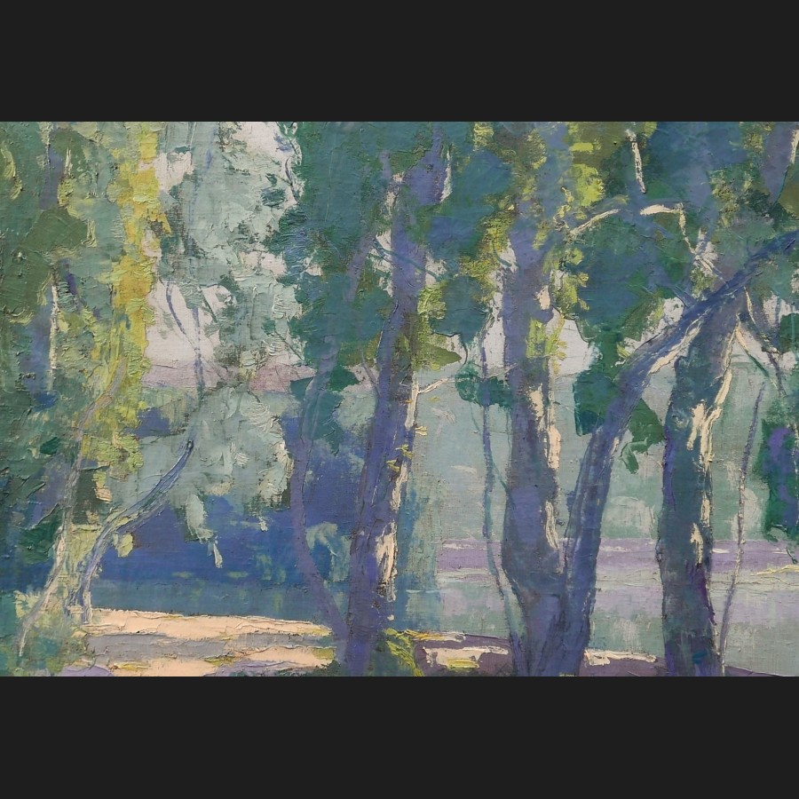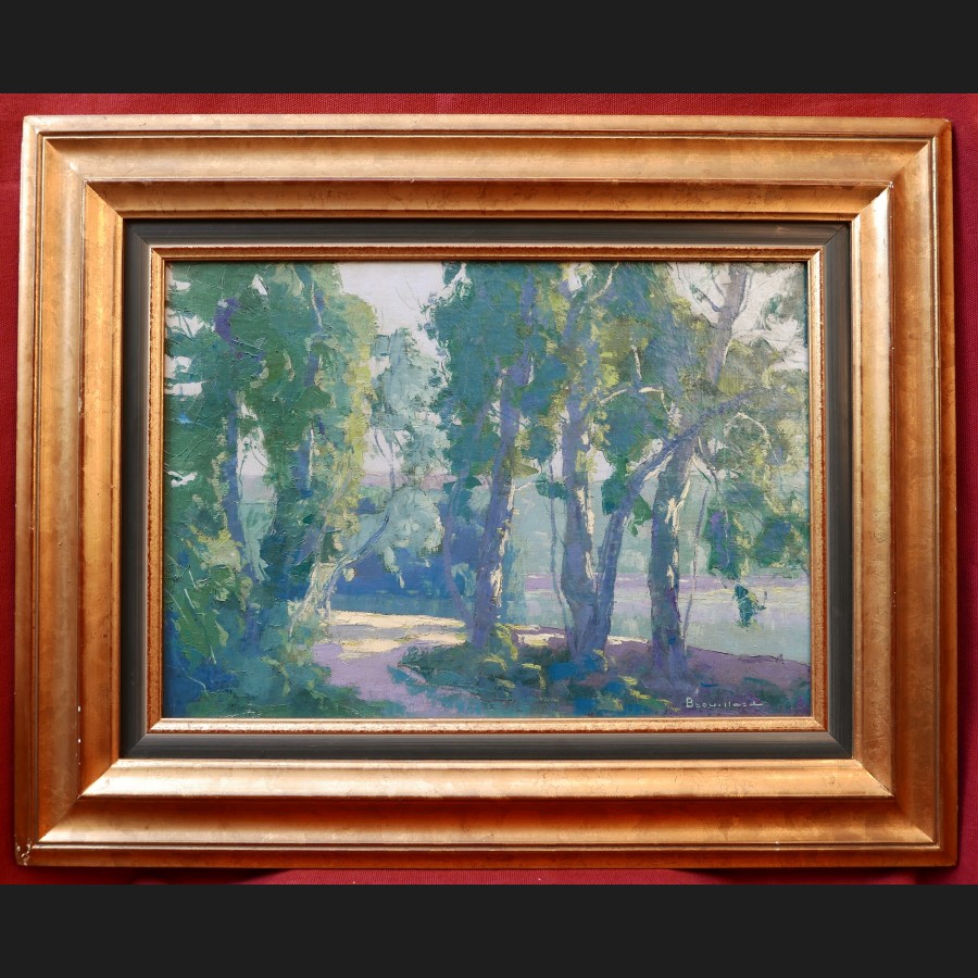 Eugène BROUILLARD, Paysage aux arbres en bord de rivière, tableau