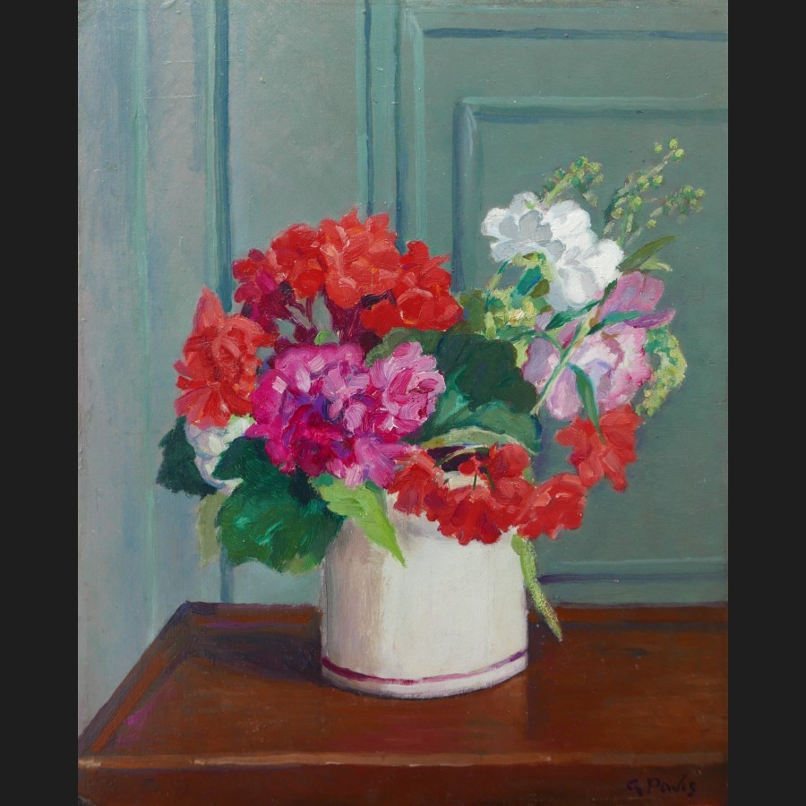 Alfred Georges PAVIS, Bouquet de fleurs dans un pichet, tableau