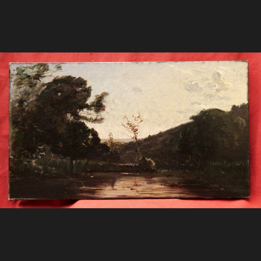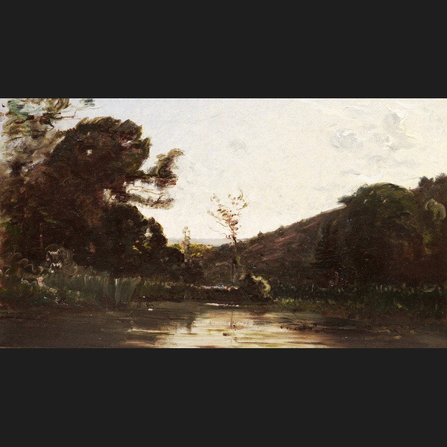 Julien DELVIGNE, Pommiers en fleurs à Arromanches, tableau