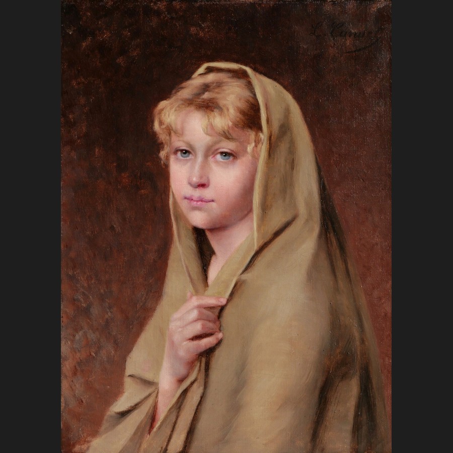 Louise CANUET, Portrait de jeune fille blonde aux yeux bleus, tableau