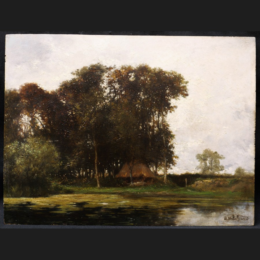 http://www.cerca-trova.fr/22164-thickbox_default/auguste-joseph-delessard-paysage-a-la-cabane-au-bord-d-un-etang-tableau.jpg View full size