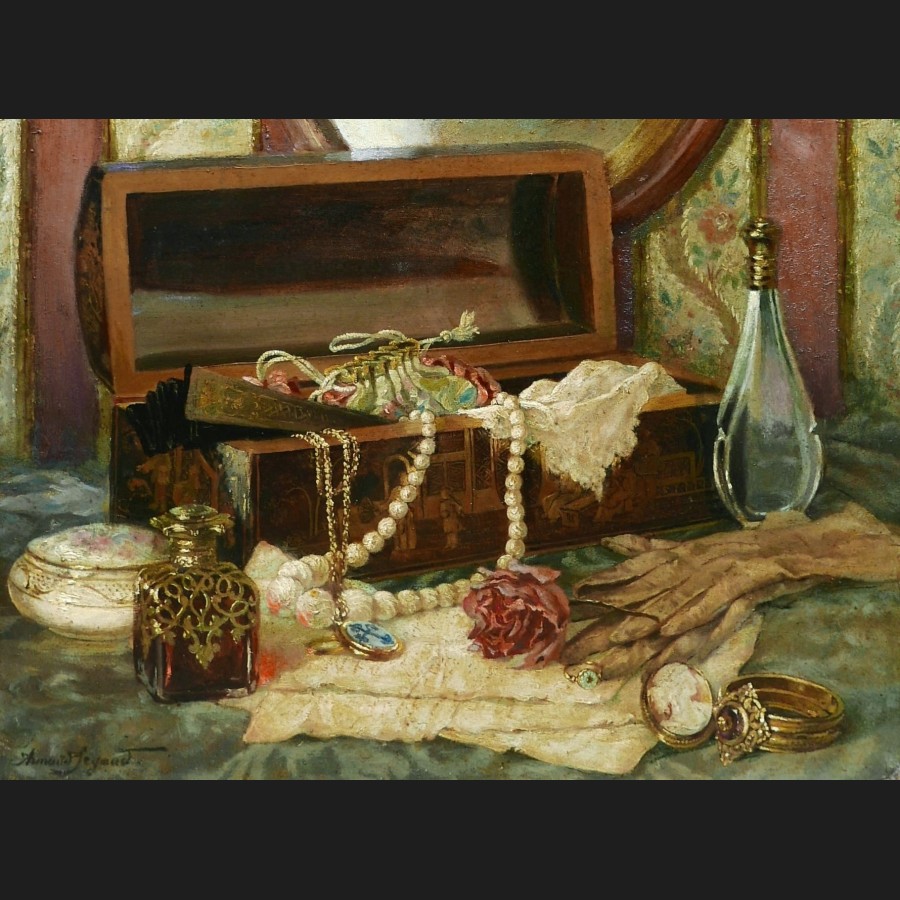 Armand SÉGAUD, Nature morte au coffret à bijoux, tableau