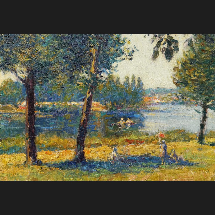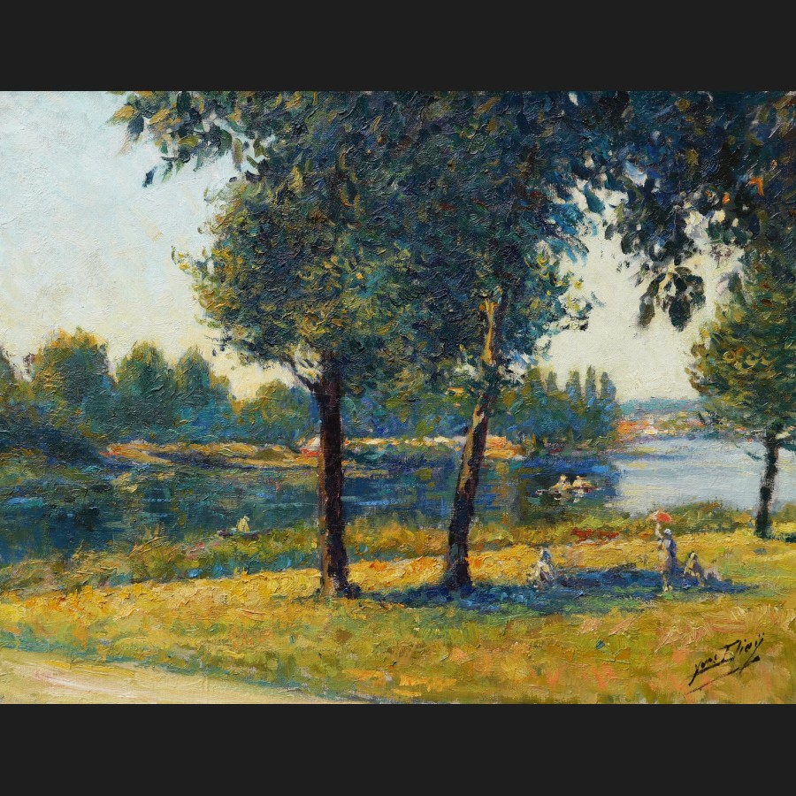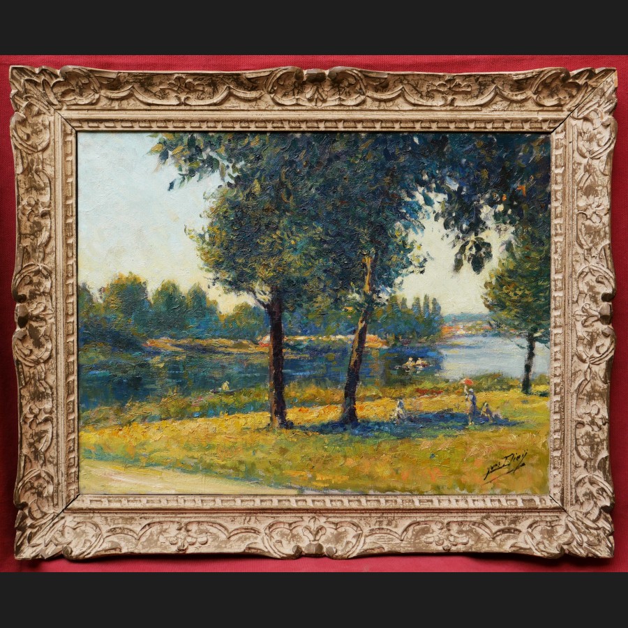 Yves DIEŸ, Un Dimanche en bord de Seine, tableau