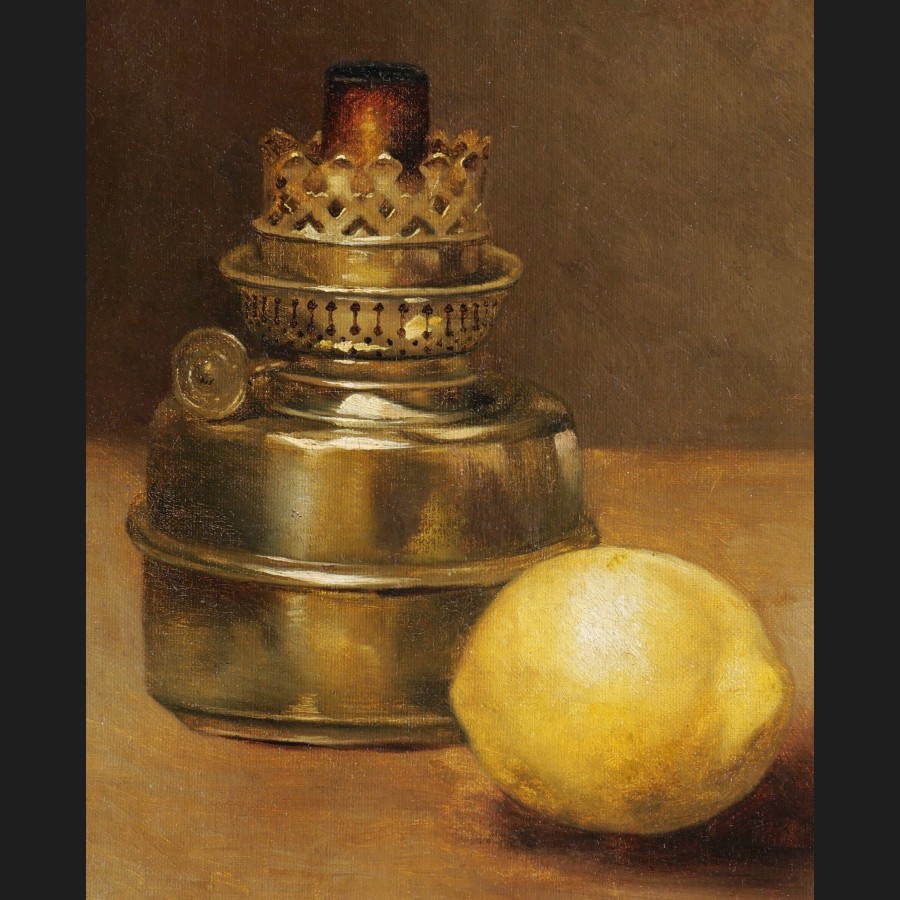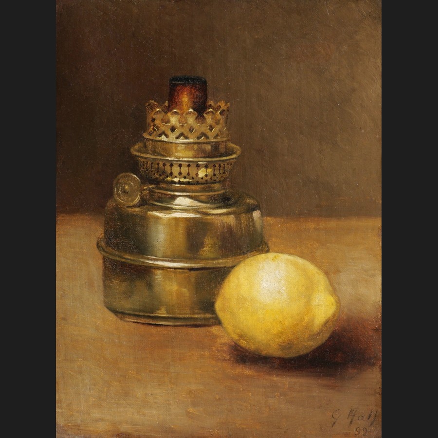 George Henry HALL, Citron et lampe à pétrole, tableau