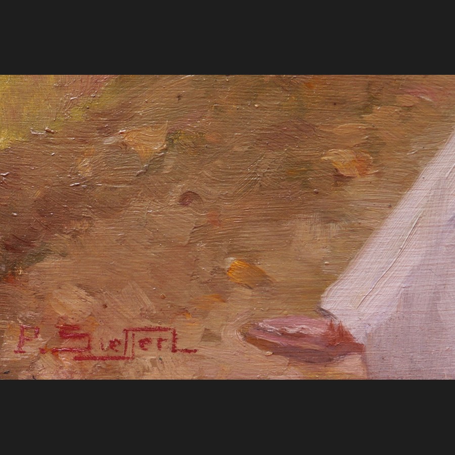 Paul SIEFFERT, Femme lisant sur un banc au parc, tableau