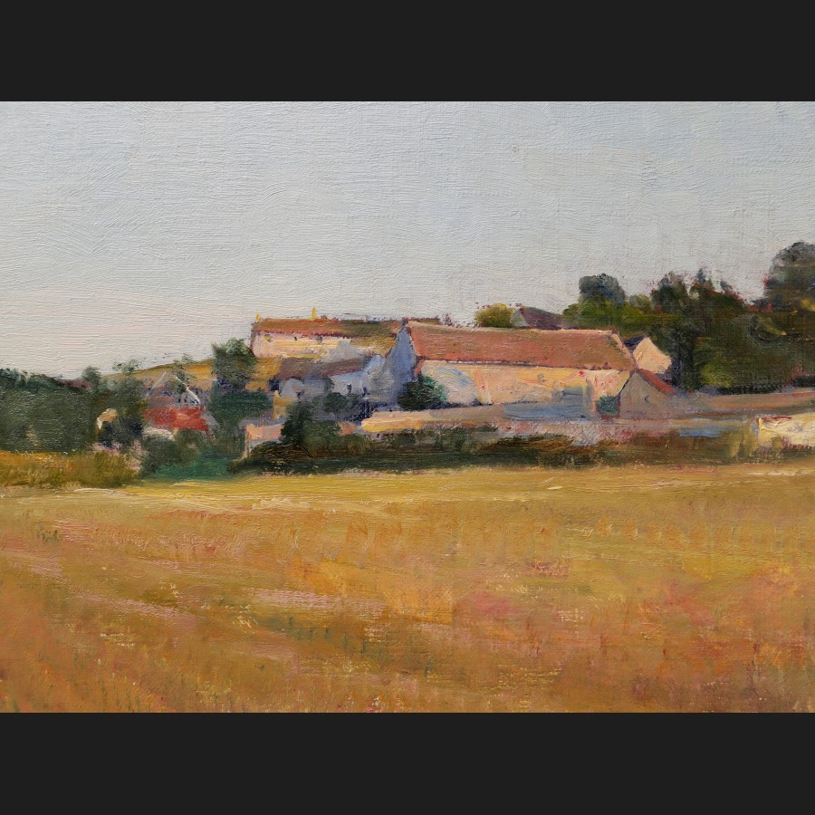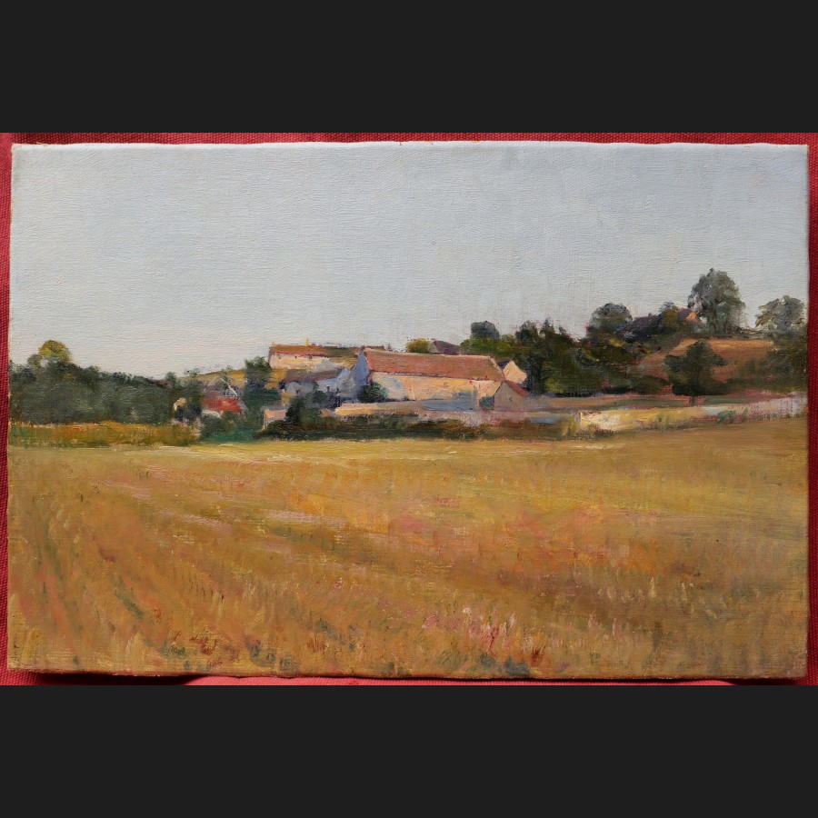 Antonin BRÉFORT-PORCHÉ, Champ et maisons à la campagne, tableau