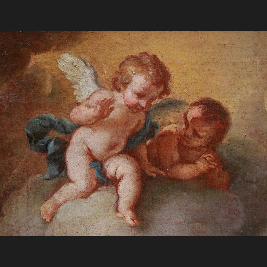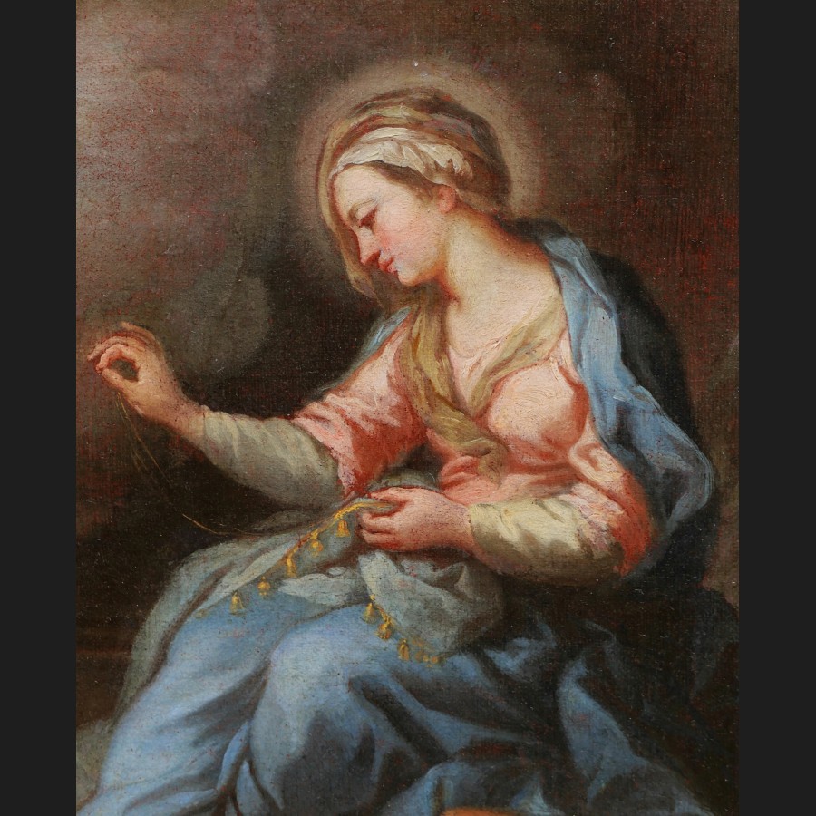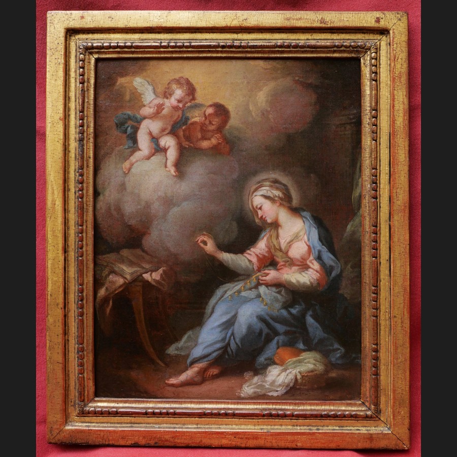École FRANÇAISE ou ITALIENNE du XVIIIème siècle, La Vierge brodant avec deux anges, tableau
