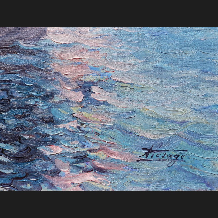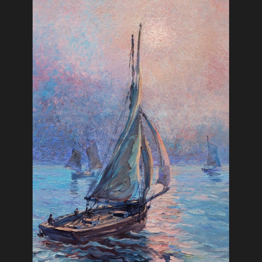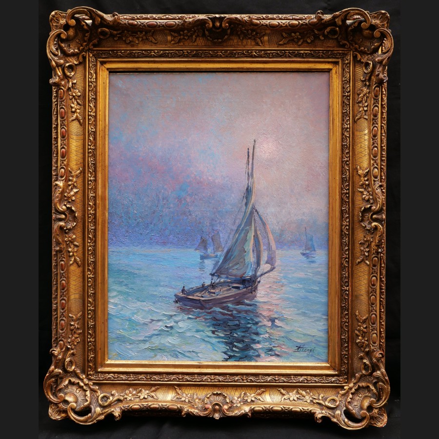 A. LESAGE, Bateau en mer à l'aurore, tableau