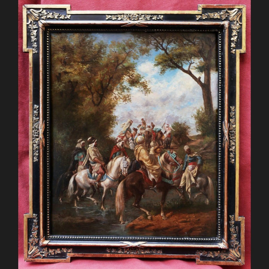 F. PLAISANT, Cavaliers arabes passant un gué, tableau
