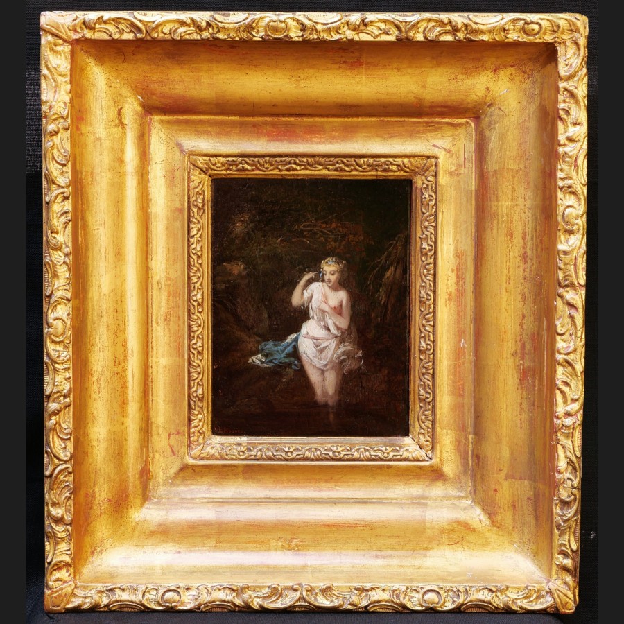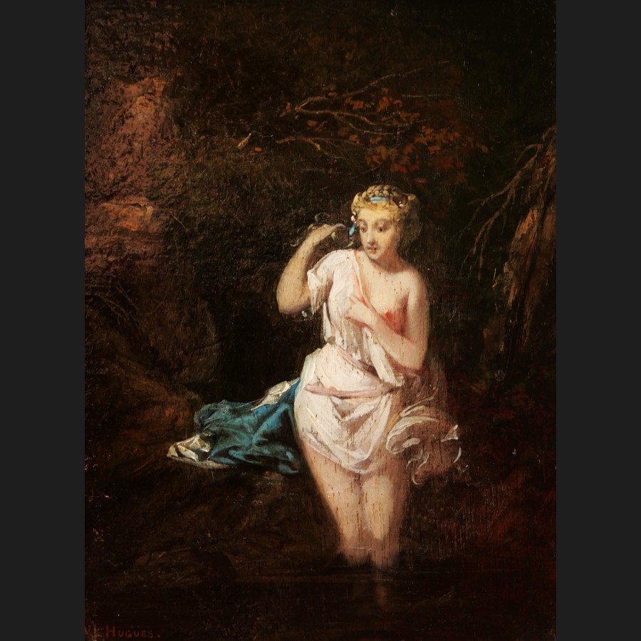 Victor Louis HUGUES, Femme entrant au bain (Diane?), tableau