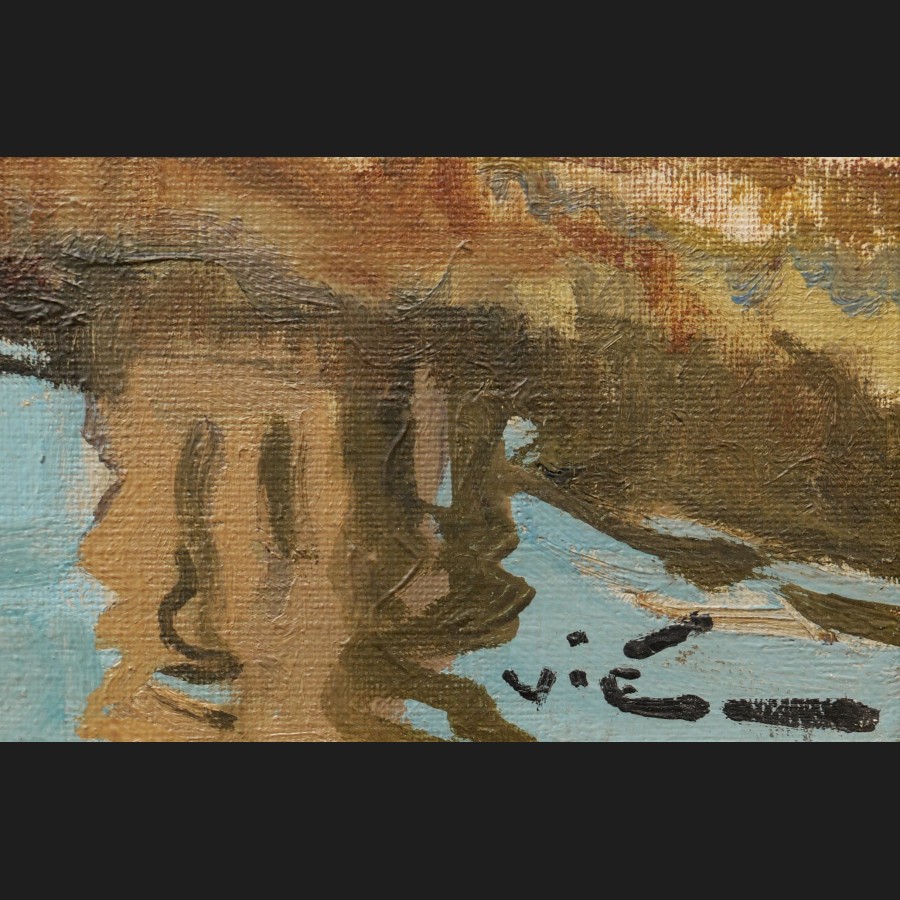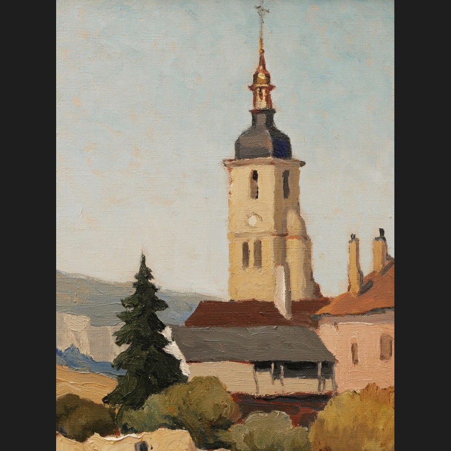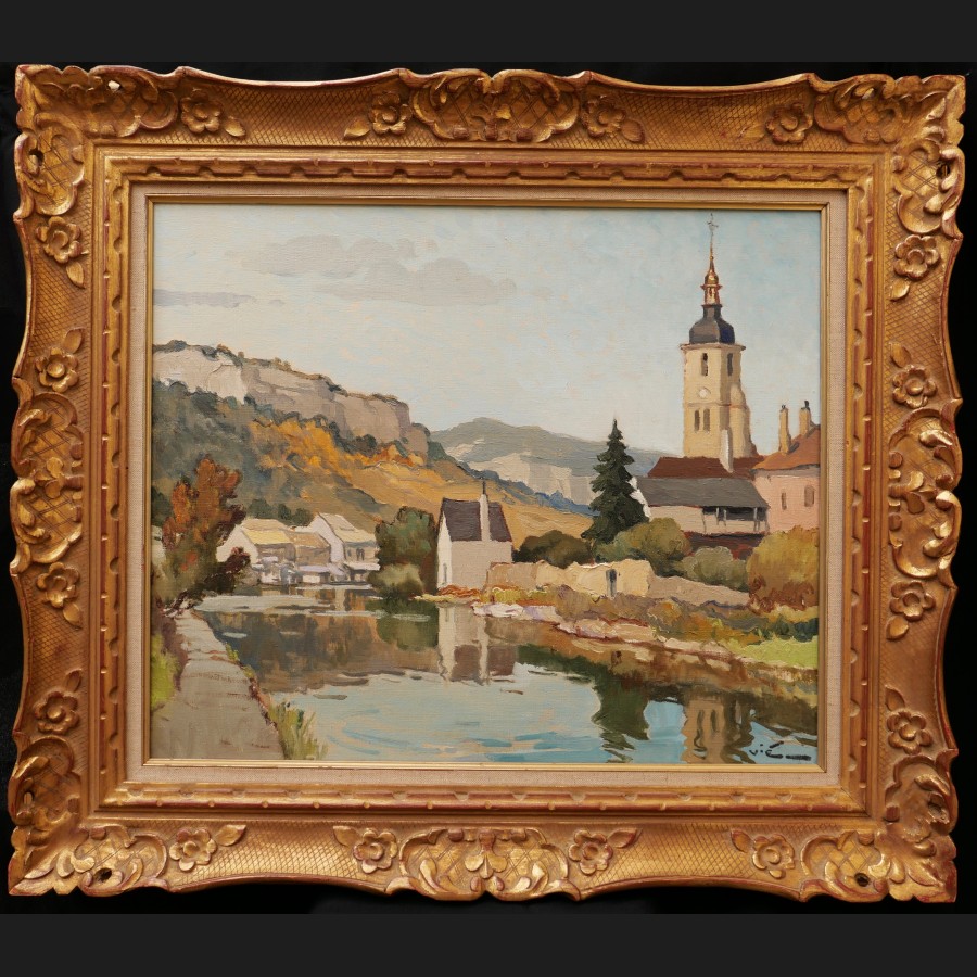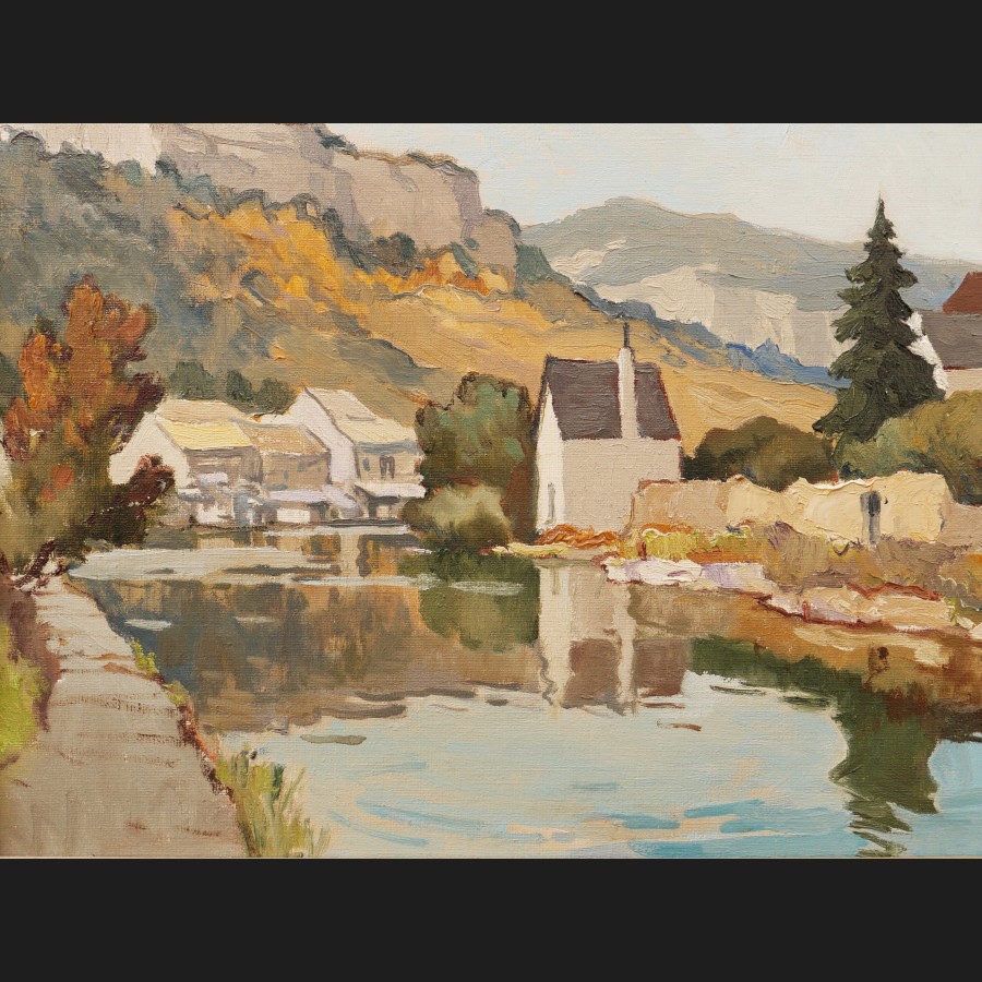 Th. LEPAGE, Paysanne tricotant dans un champ de vaches, tableau