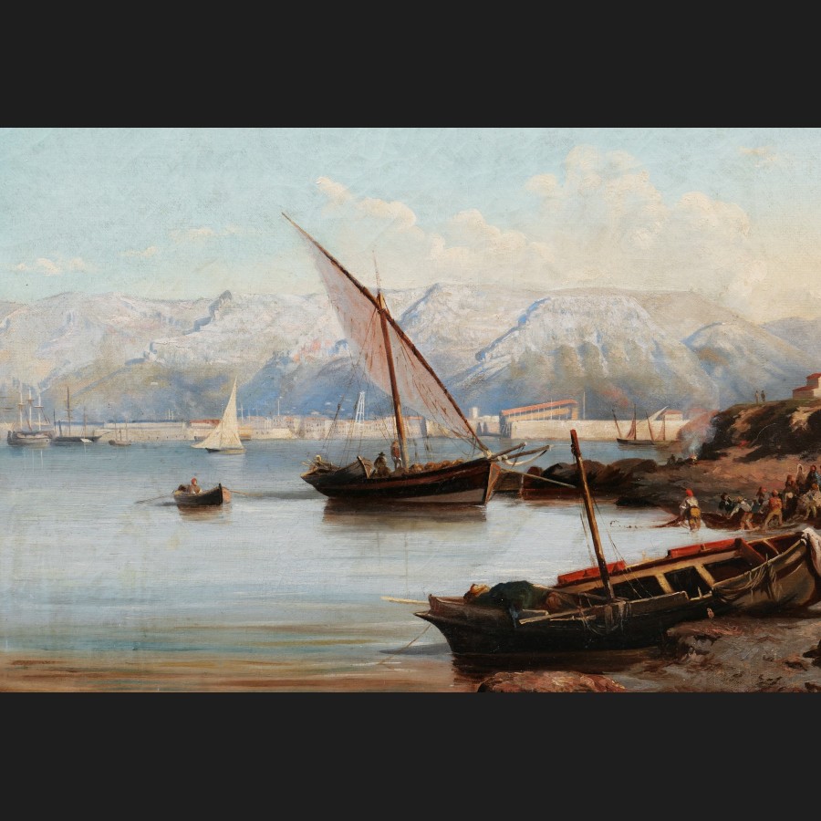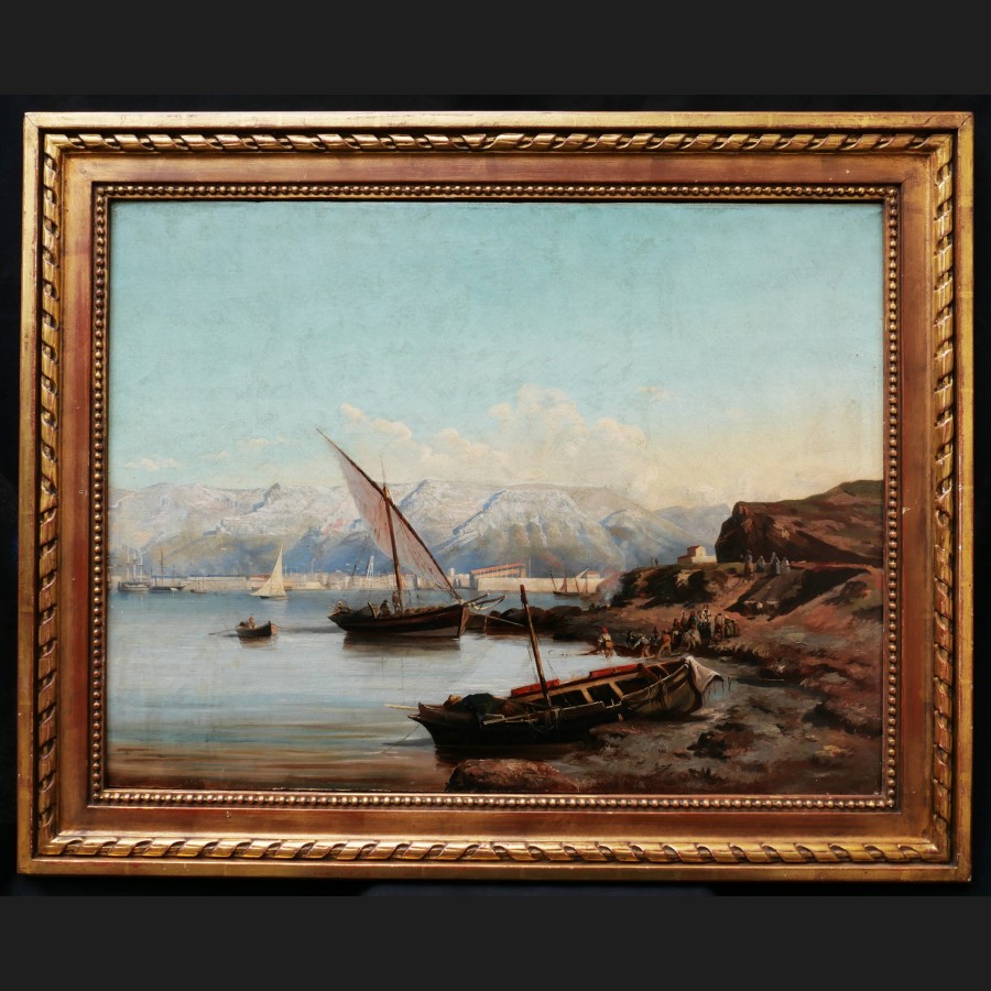 École FRANÇAISE du XIXème siècle, Vue animée de la rade de Toulon, tableau