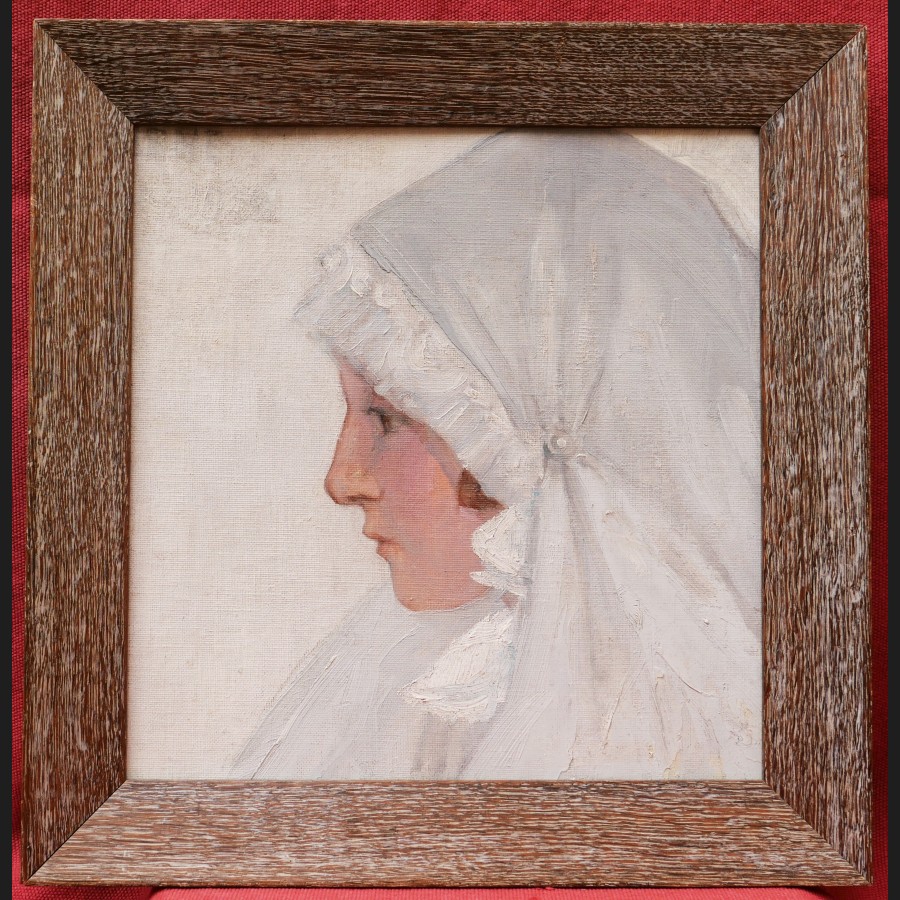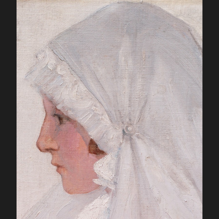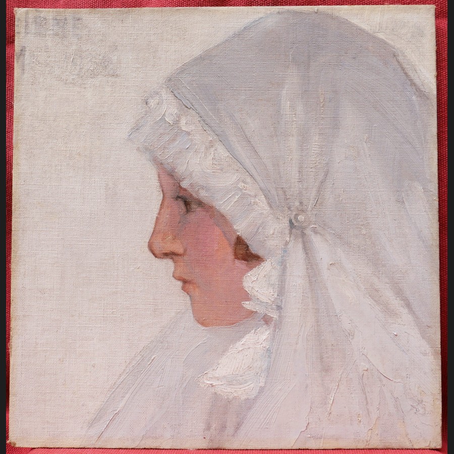École FRANÇAISE circa 1920-1930, Communiante de profil, tableau