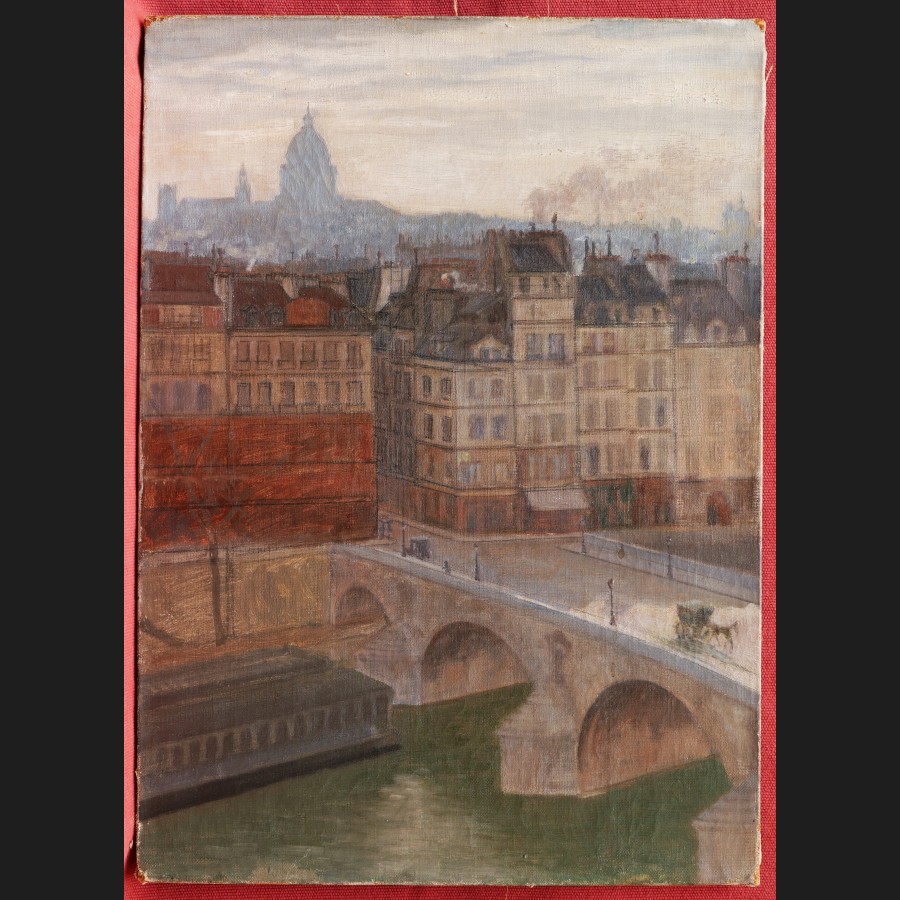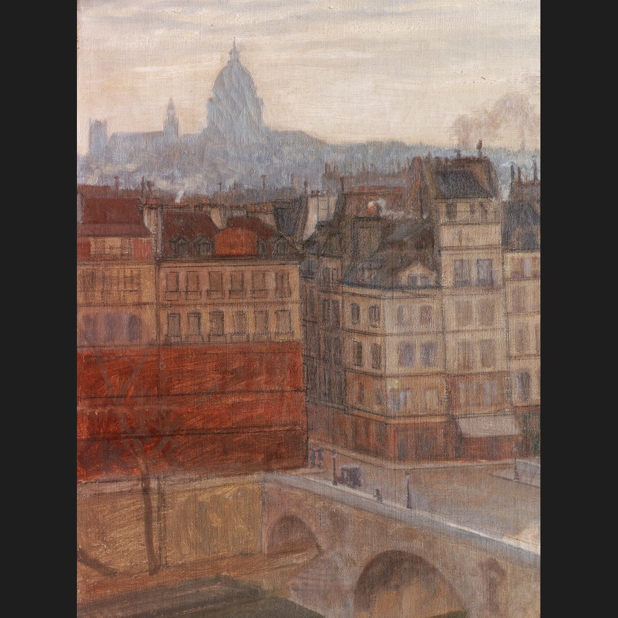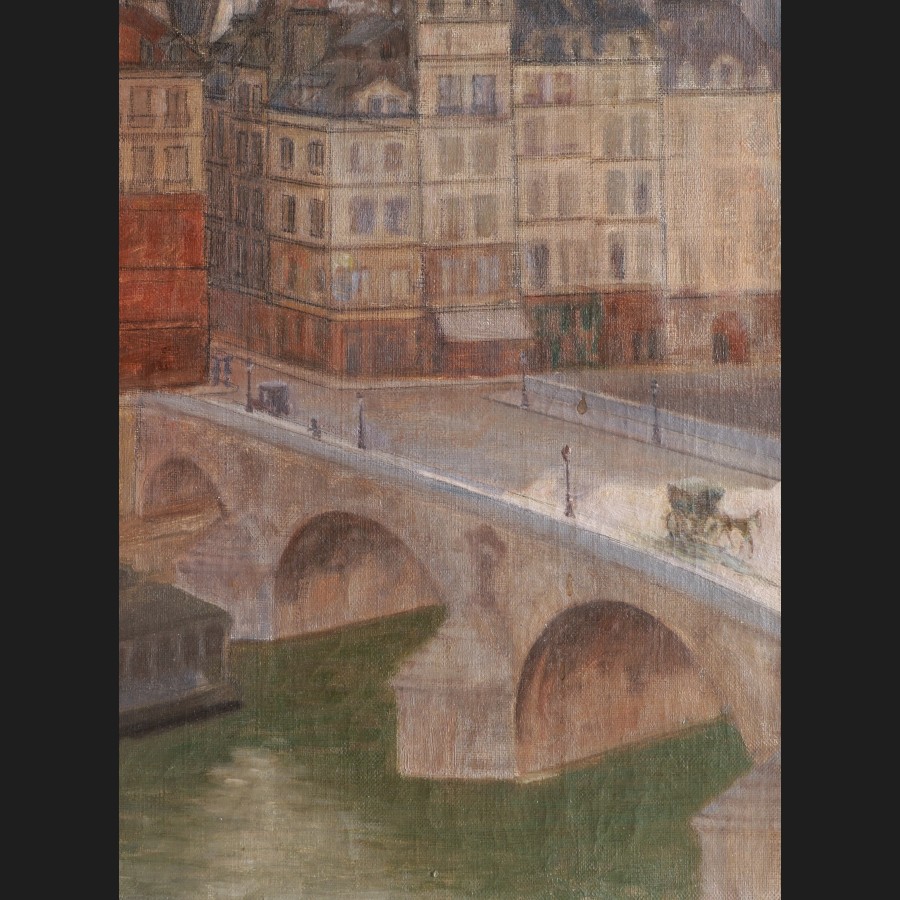 École FRANÇAISE circa 1900, Le Pont Marie et le Panthéon à Paris, tableau
