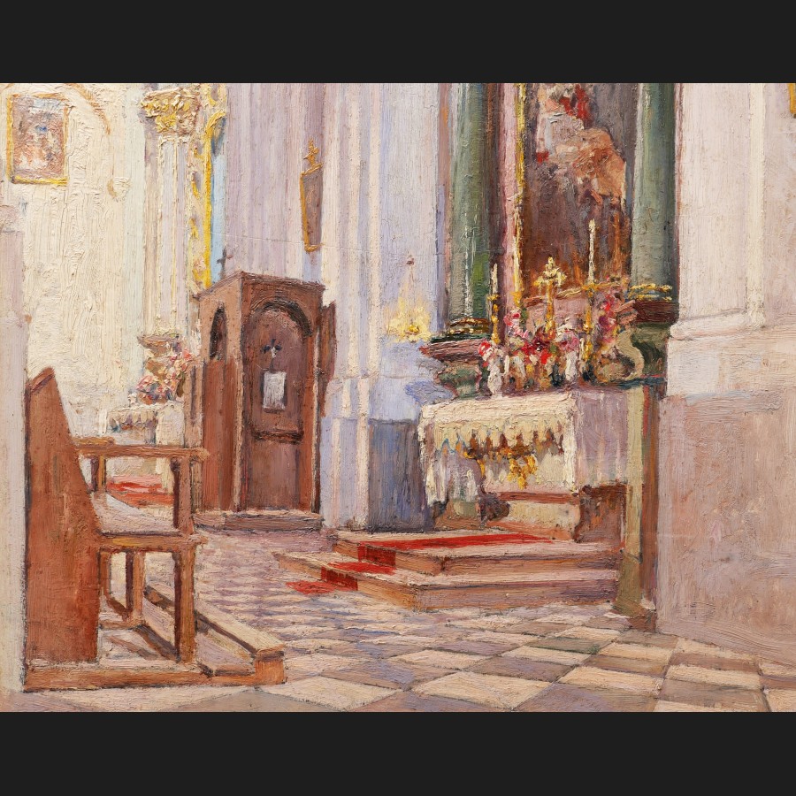 Joseph Louis François LÉPINE, Intérieur d'église, tableau