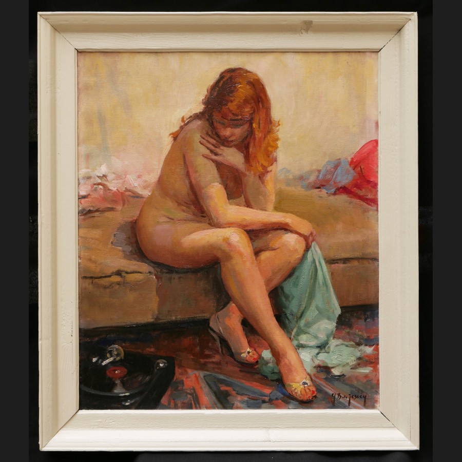 Attribué à Charles CHAPLIN, Portrait de femme en robe jaune, tableau