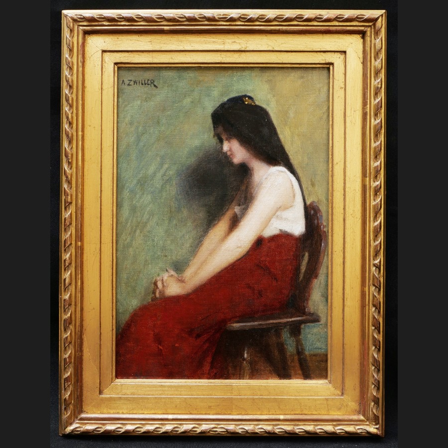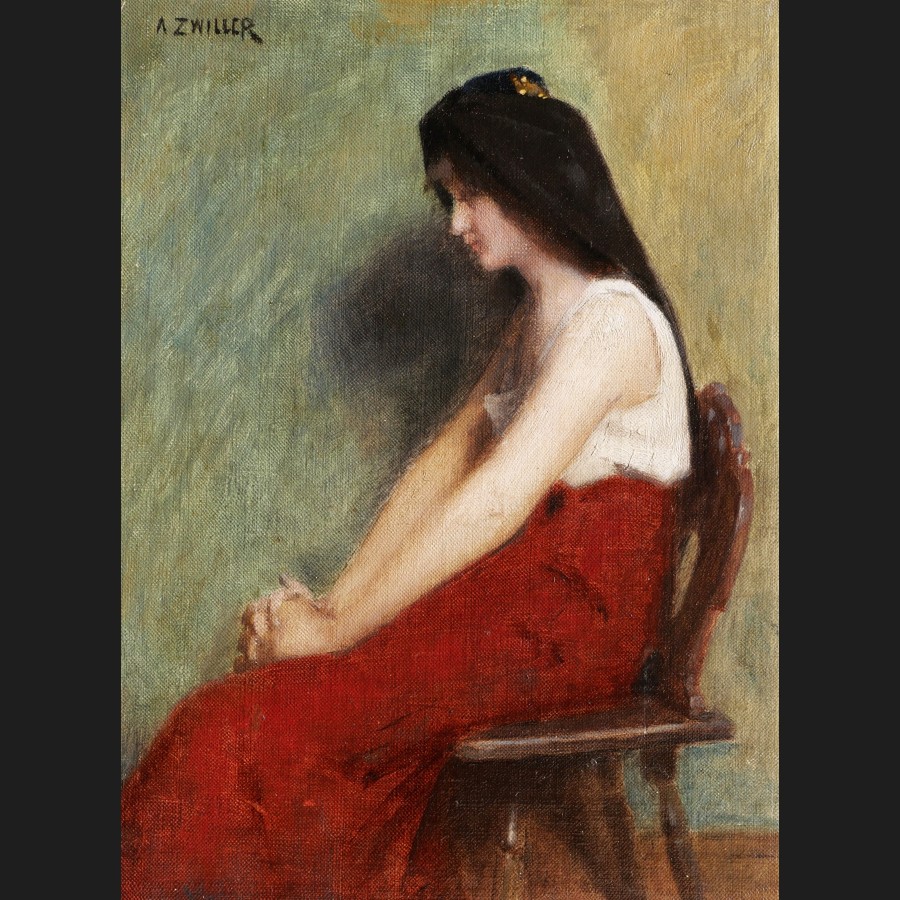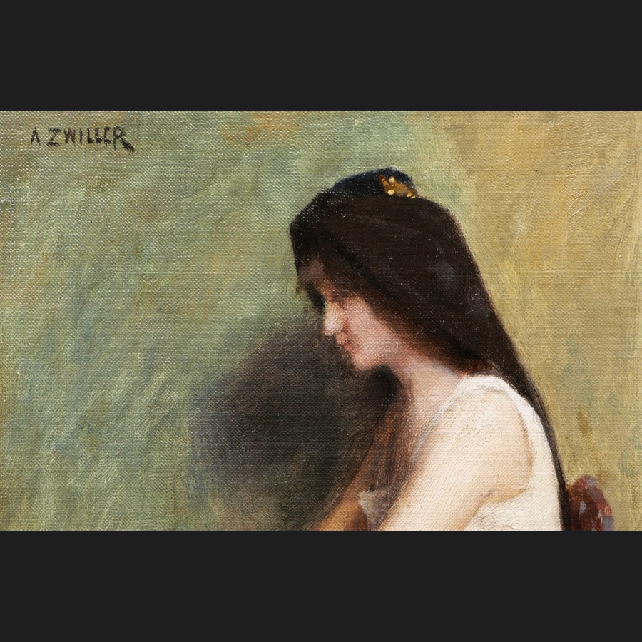 Marie-Augustin ZWILLER, Jeune Alsacienne assise, de profil, tableau
