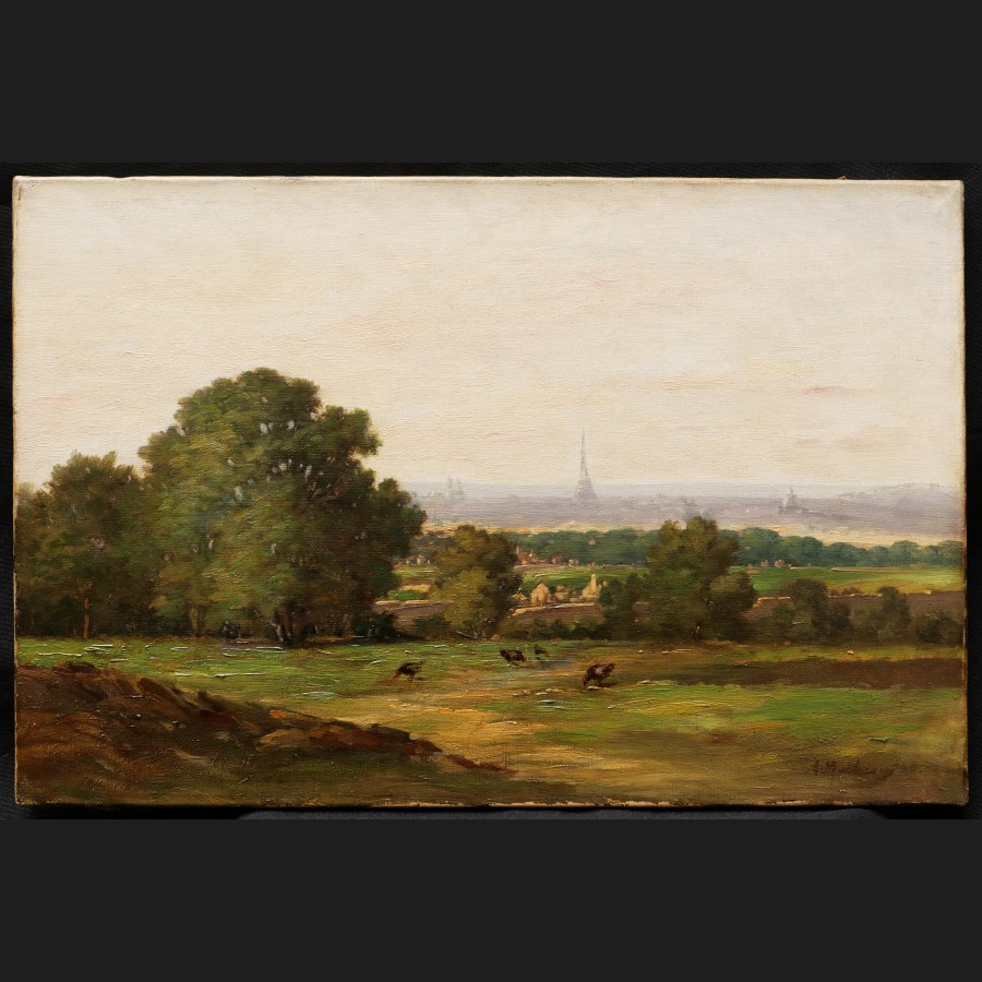 Attribué à Auguste MATHIEU, Vue de Paris depuis le Parc de Saint-Cloud, tableau