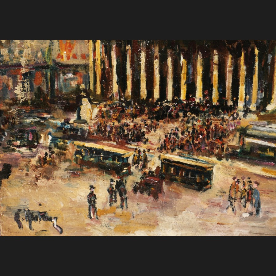 HARTWIG, La Place de la Bourse animée à Paris, tableau