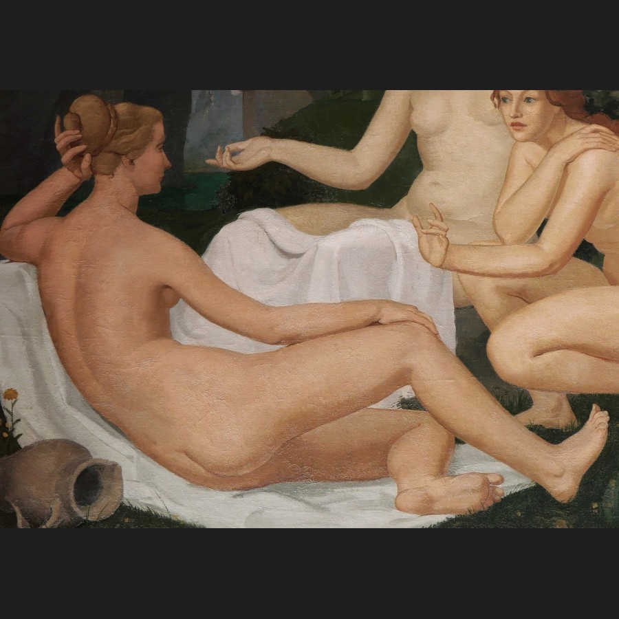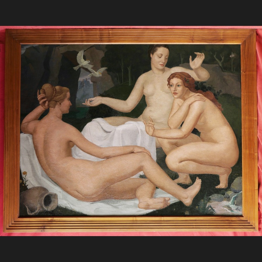 Joseph LAILHACA, Trois baigneuses dans un paysage arcadien, tableau