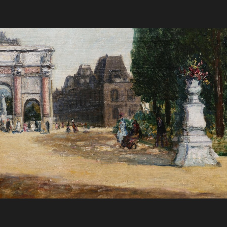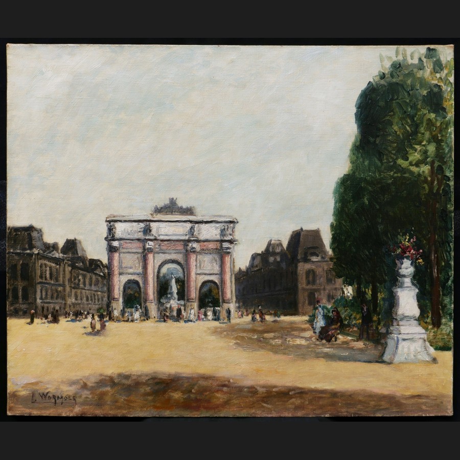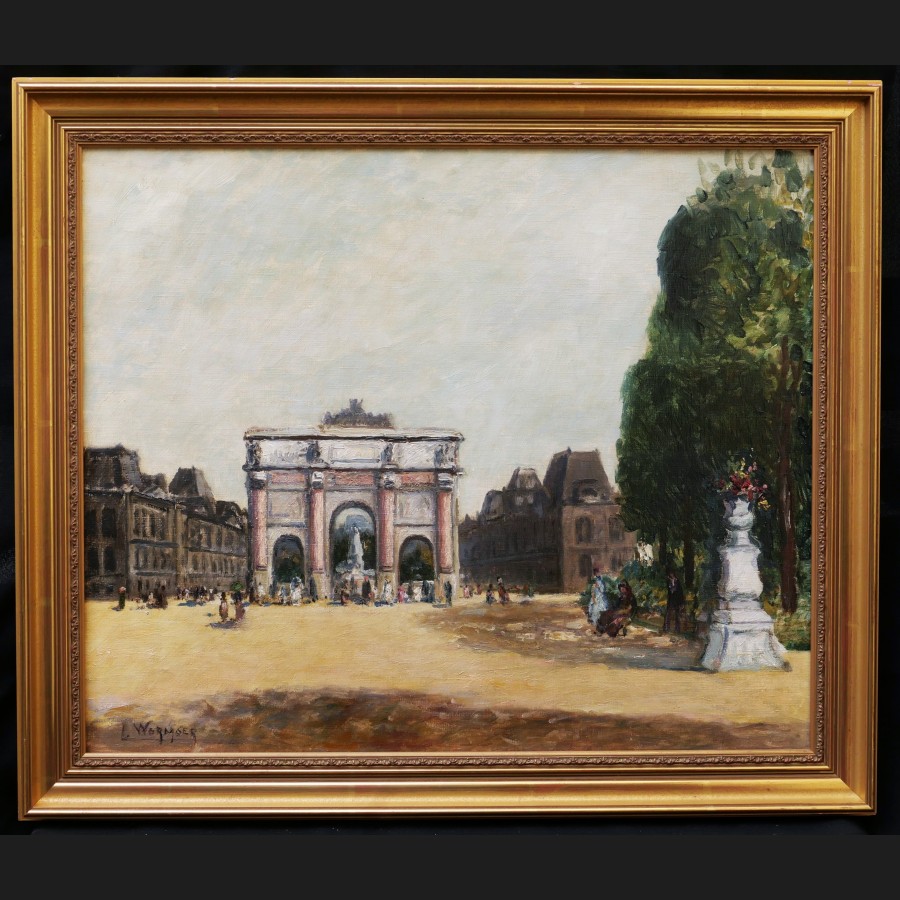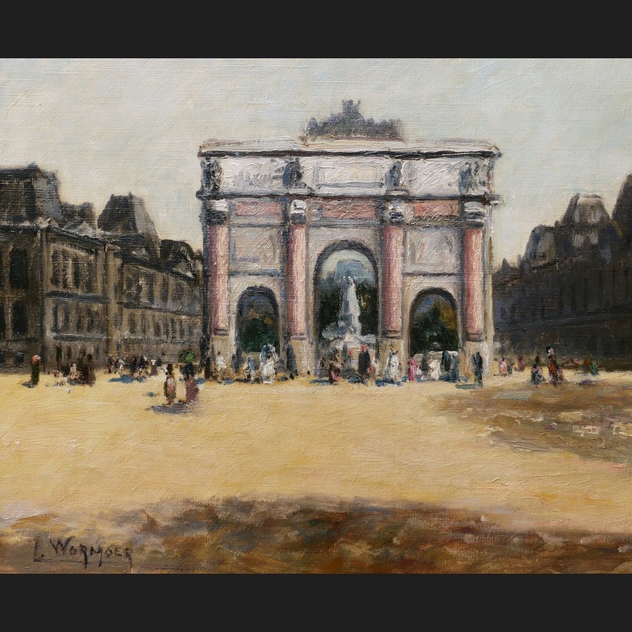 Lucien WORMSER, Vue animée devant l'Arc de Triomphe du Carrousel aux Tuileries, tableau