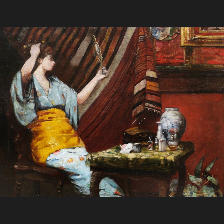 Paul CHOCARNE-MOREAU, Femme en kimono dans un intérieur, tableau