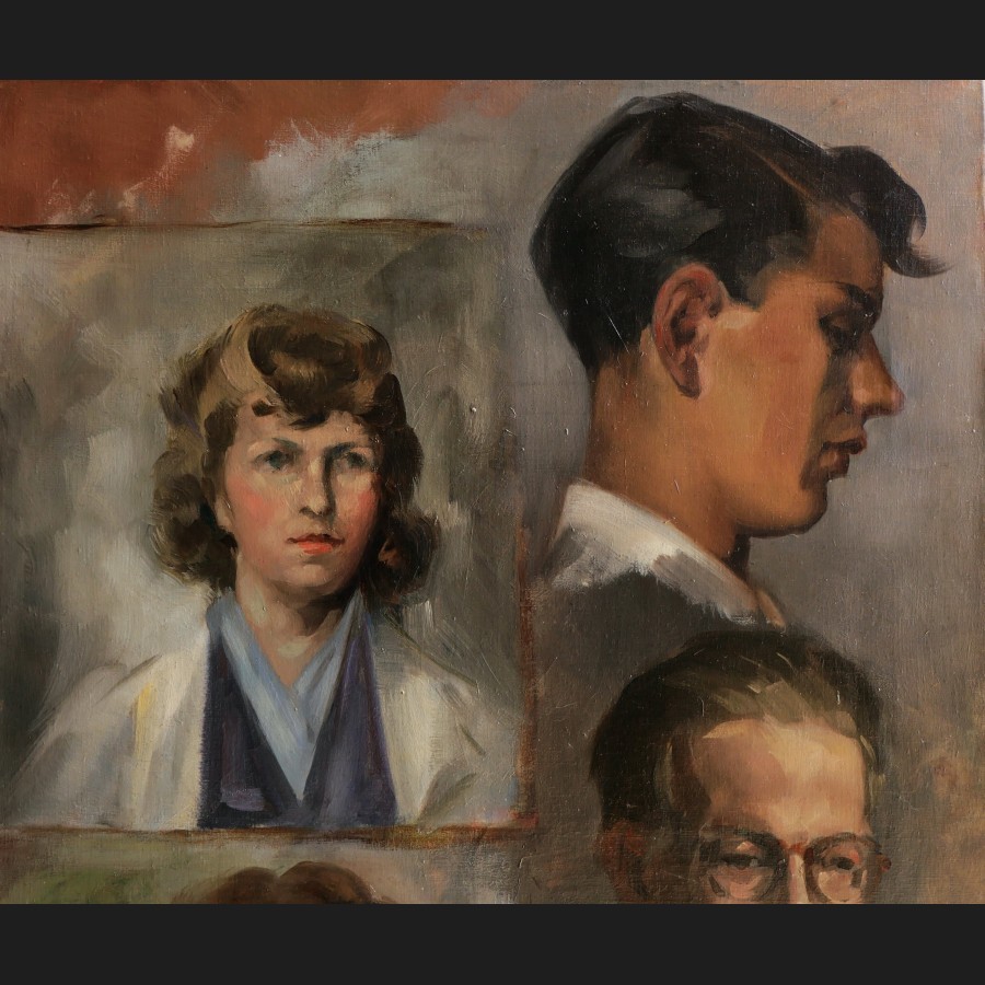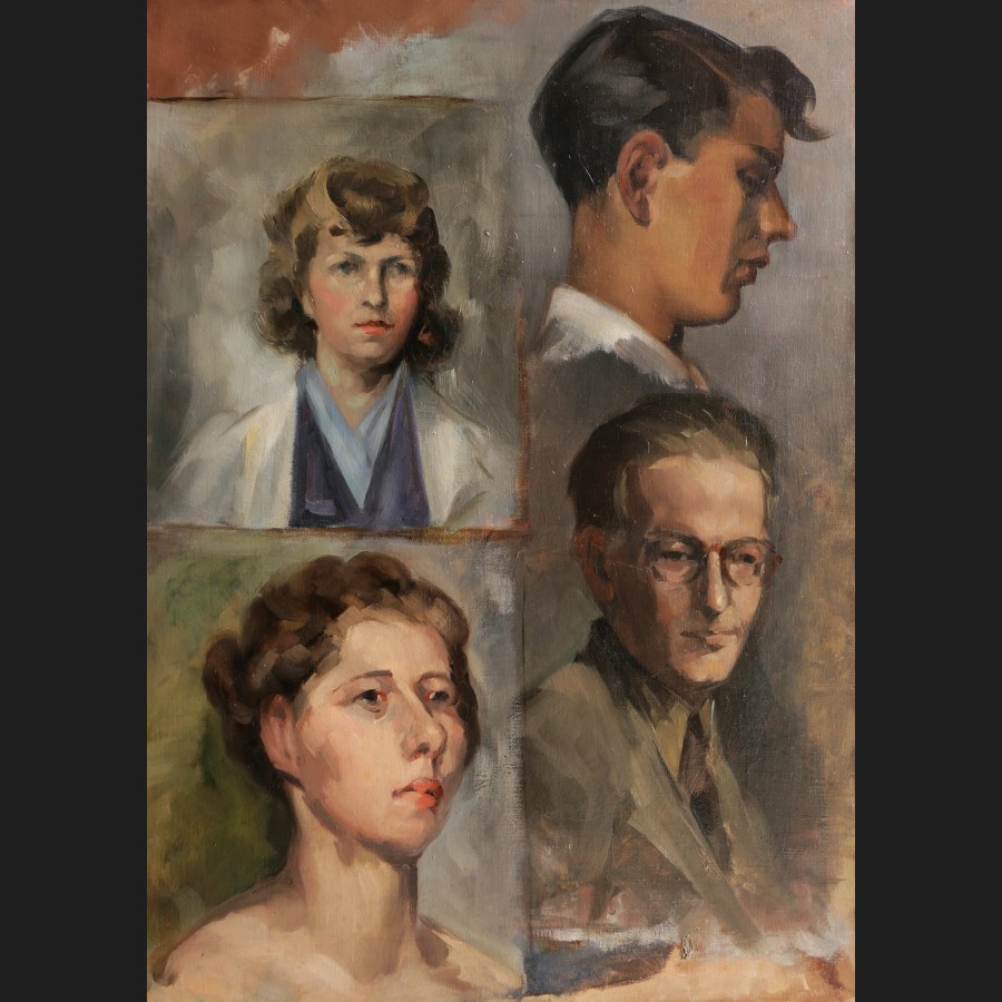 École FRANÇAISE circa 1930-1940, Quatre études de visages, tableau