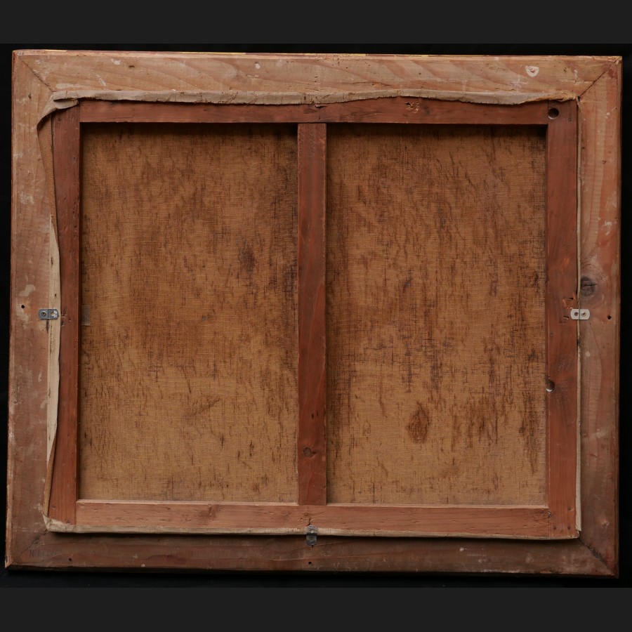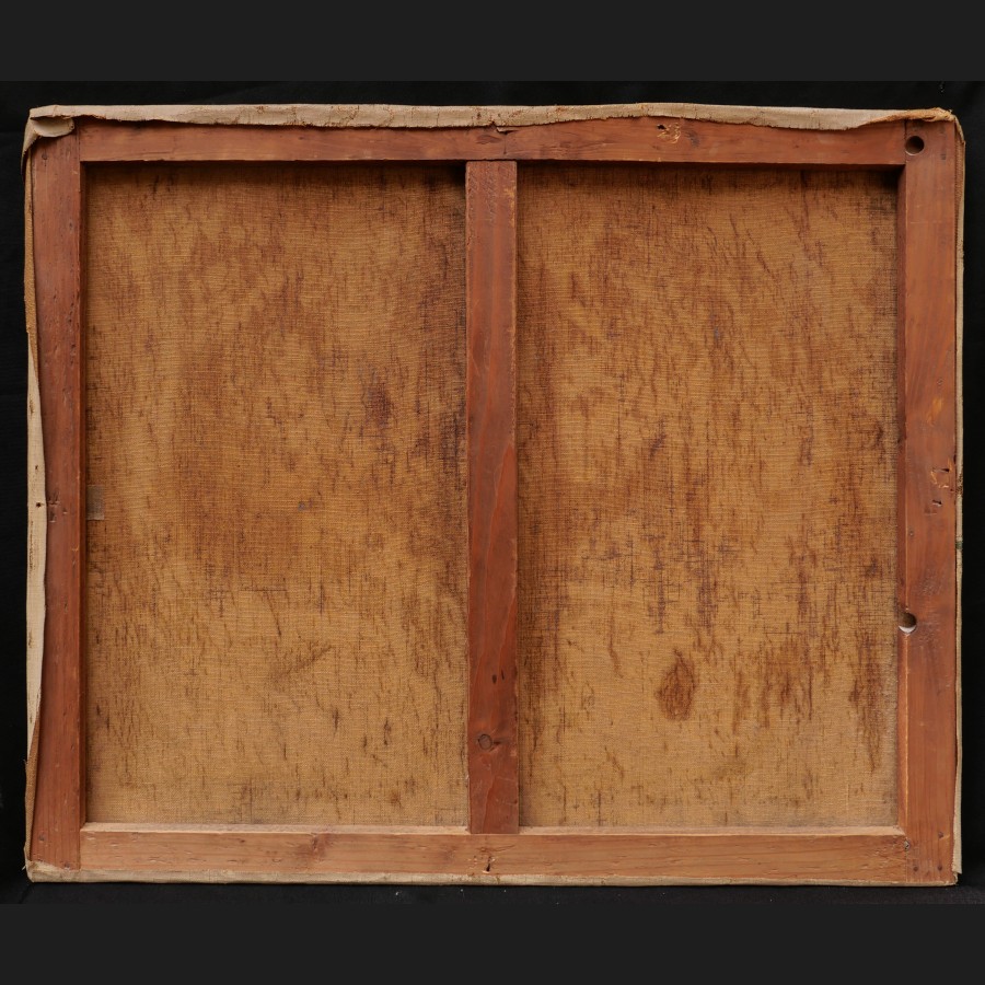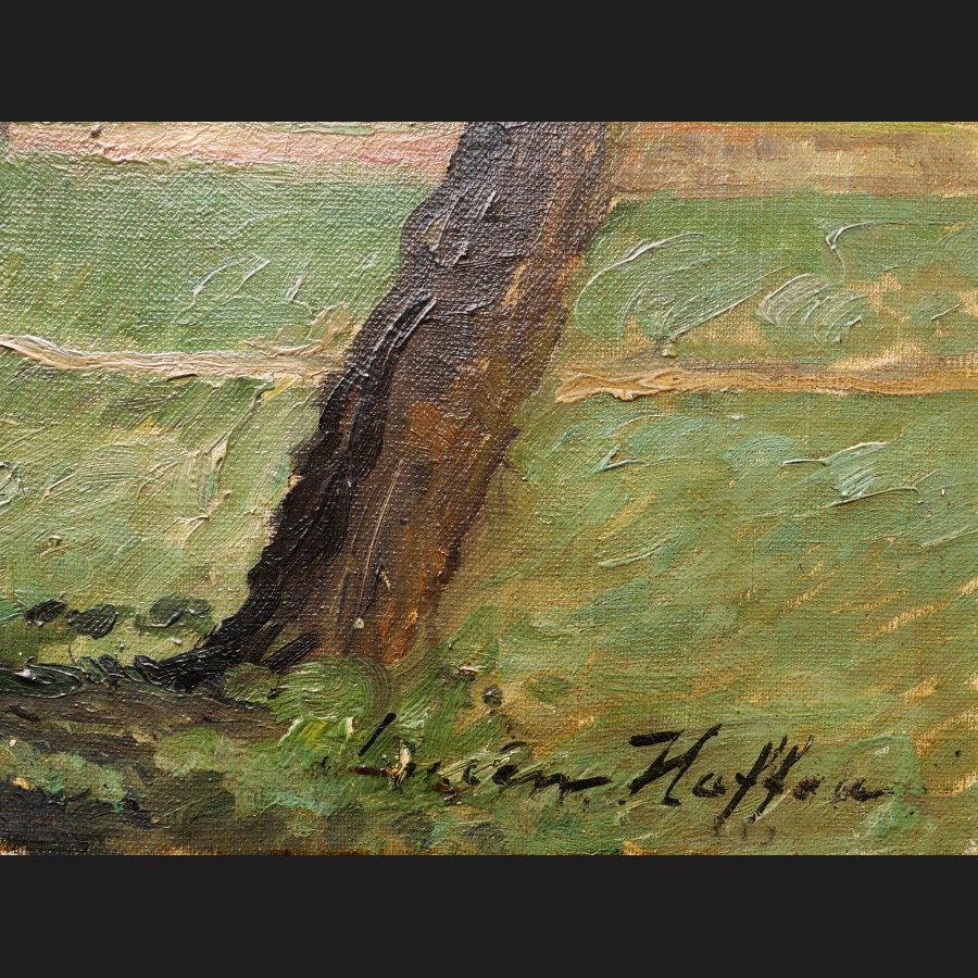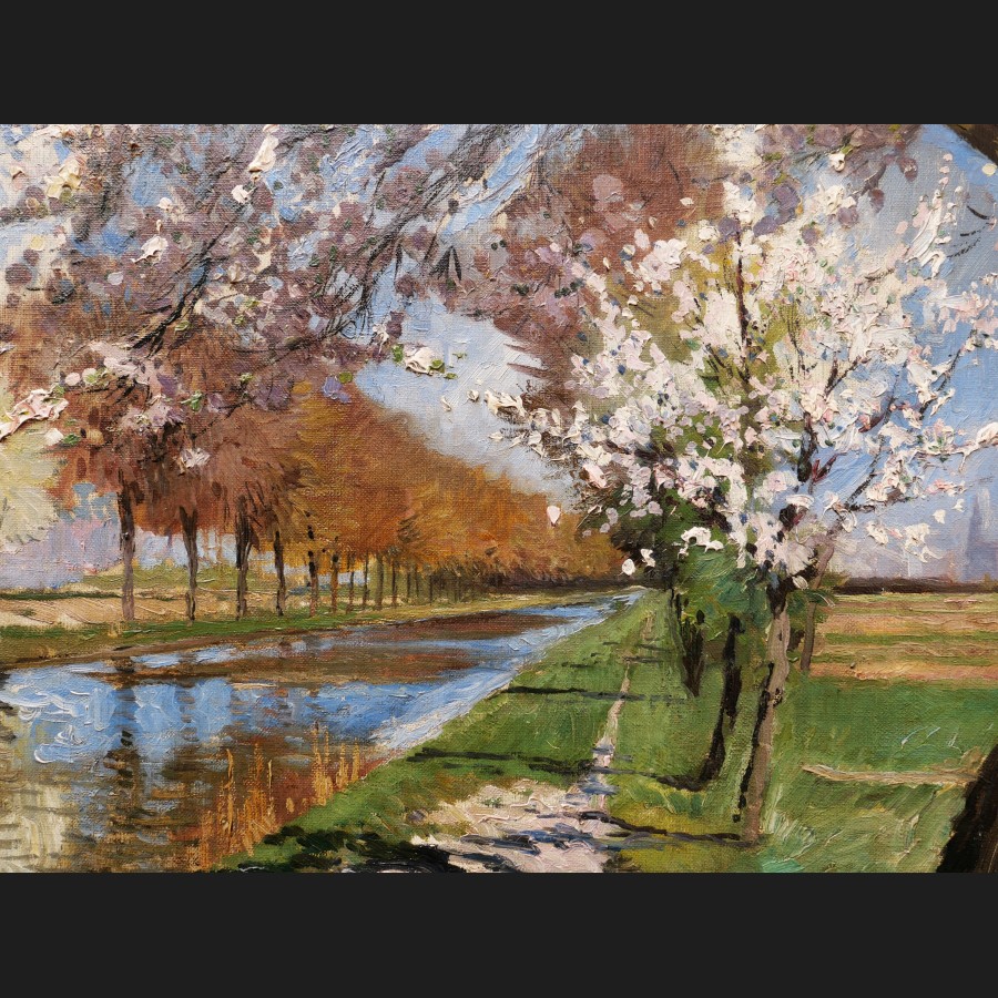Lucien HAFFEN, Arbres en fleurs au printemps le long d'un canal, tableau
