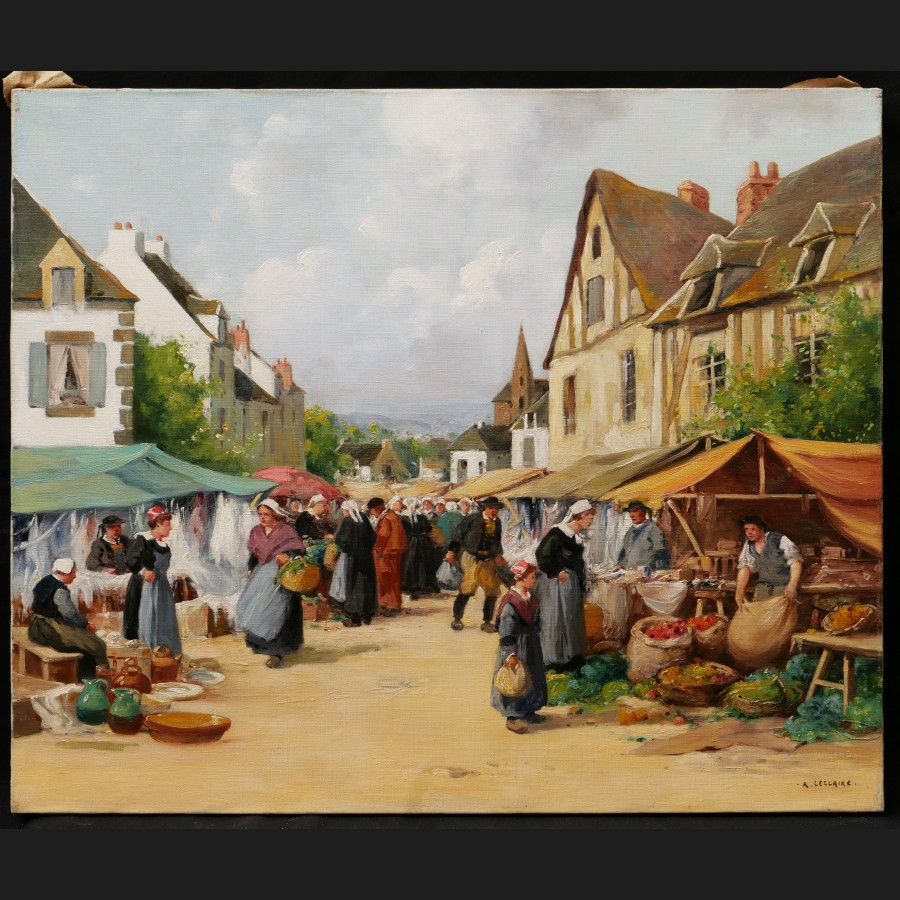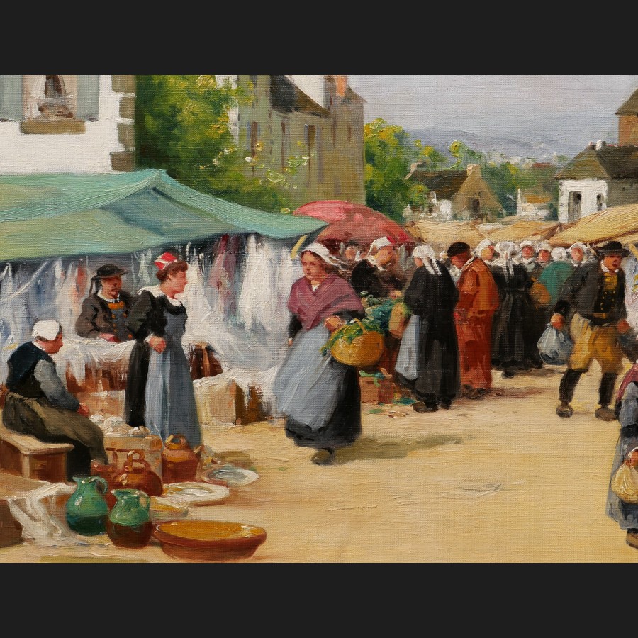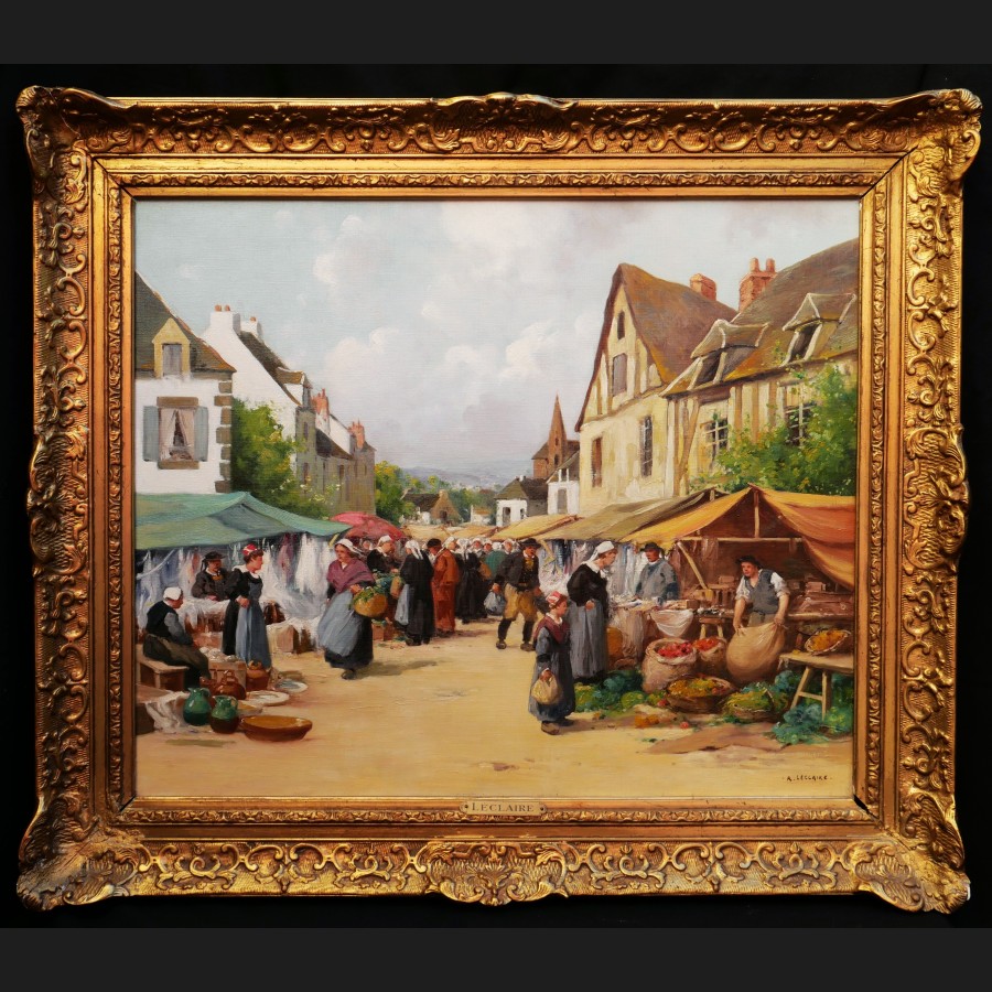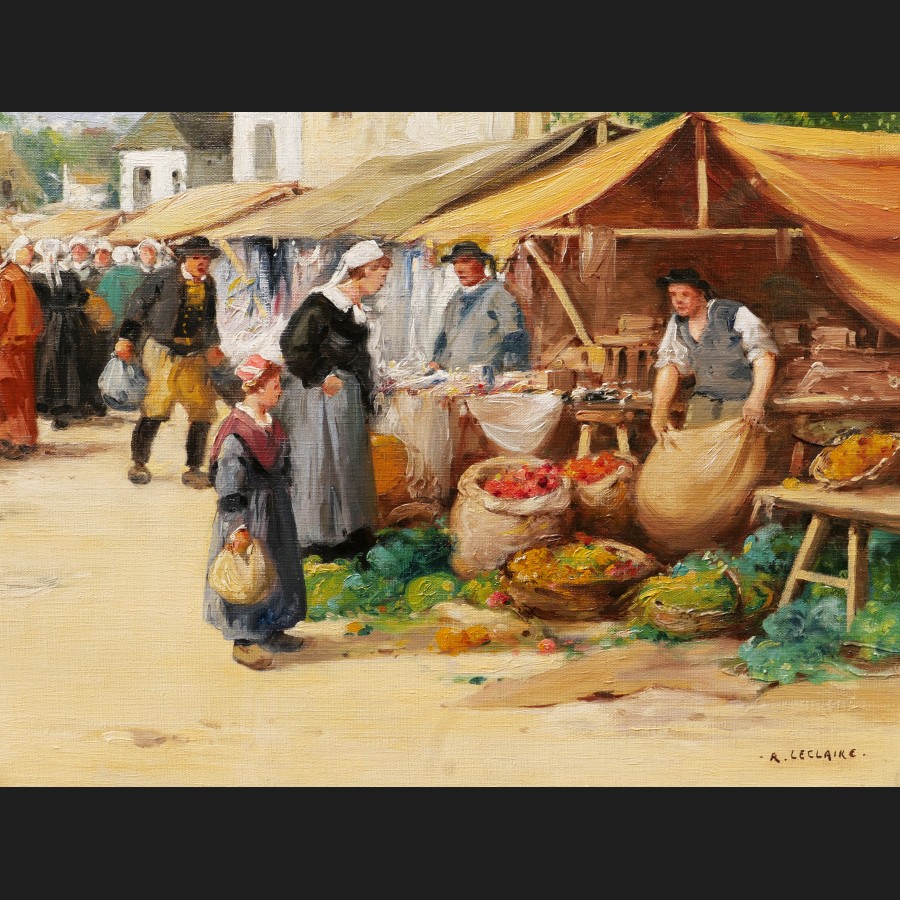 R. LECLAIRE, Scène de marché en Bretagne, tableau