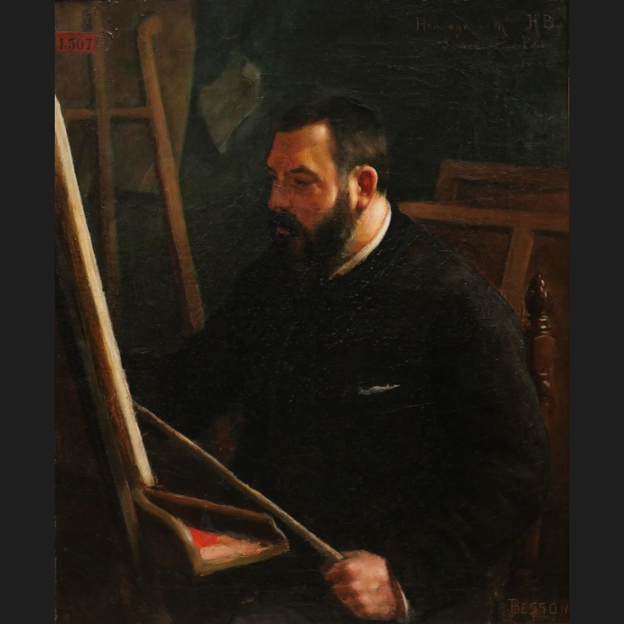 Jules-Gustave BESSON, Portrait du père de l'artiste à son chevalet, tableau