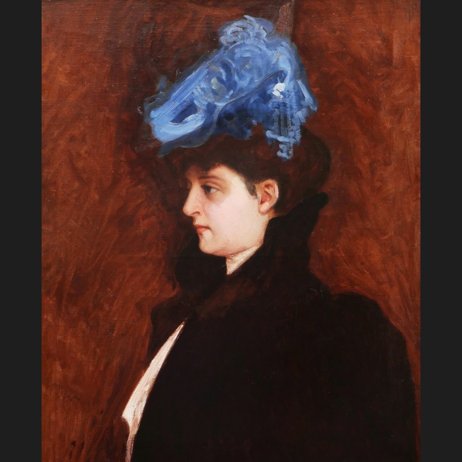 http://www.cerca-trova.fr/20931-thickbox_default/ecole-francaise-du-xixeme-siecle-portrait-de-femme-de-profil-au-chapeau-de-plumes-bleues-tableau.jpg View full size