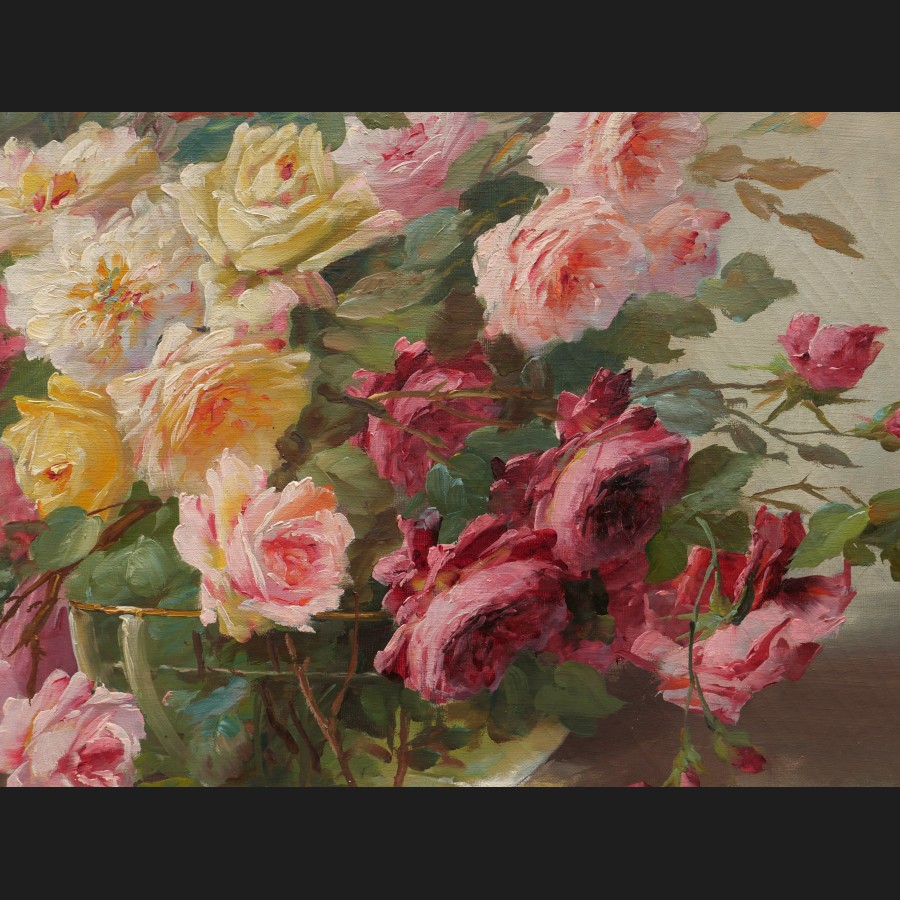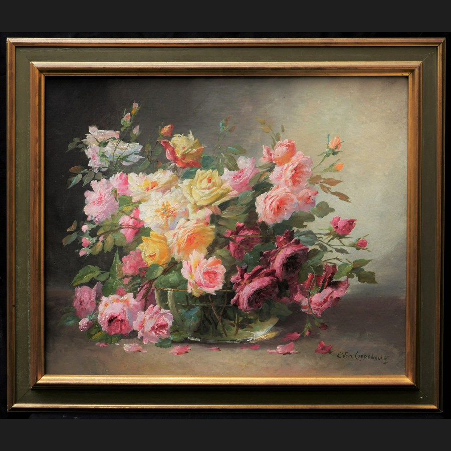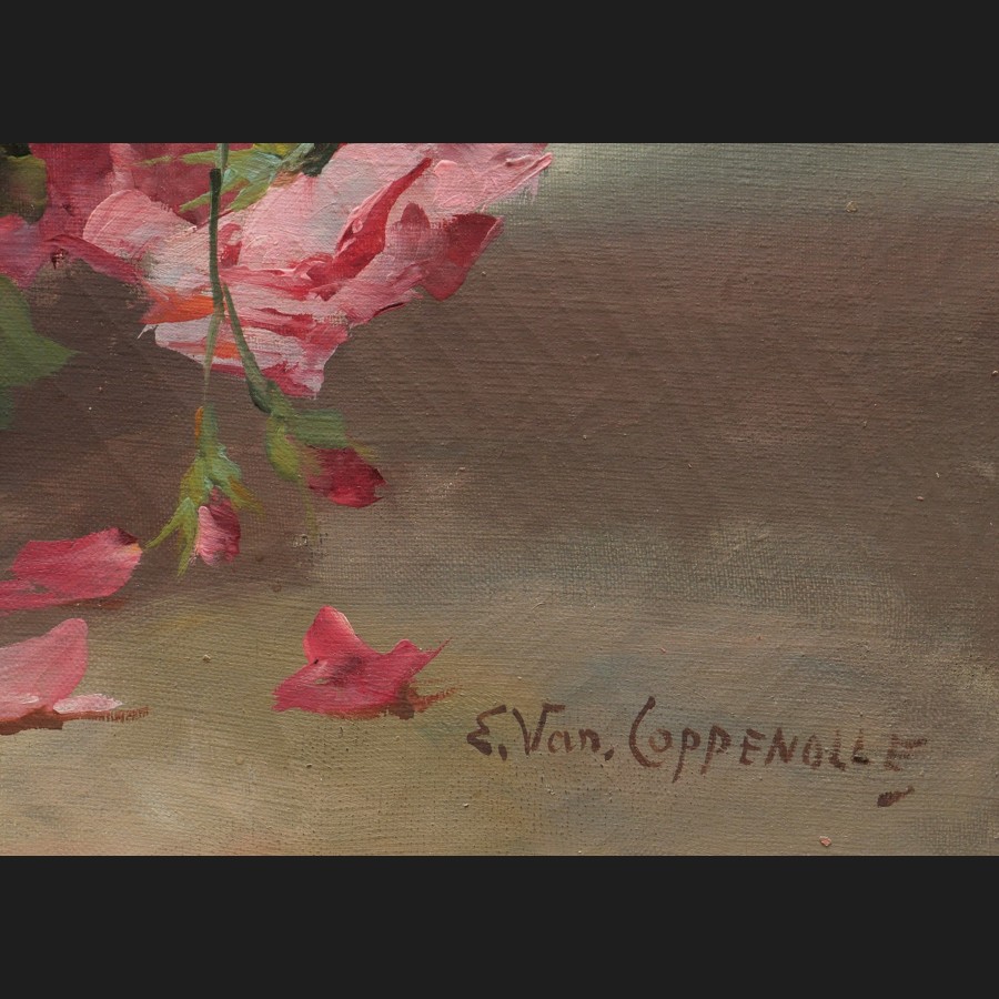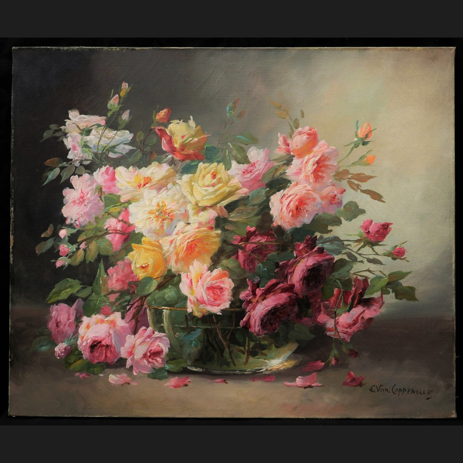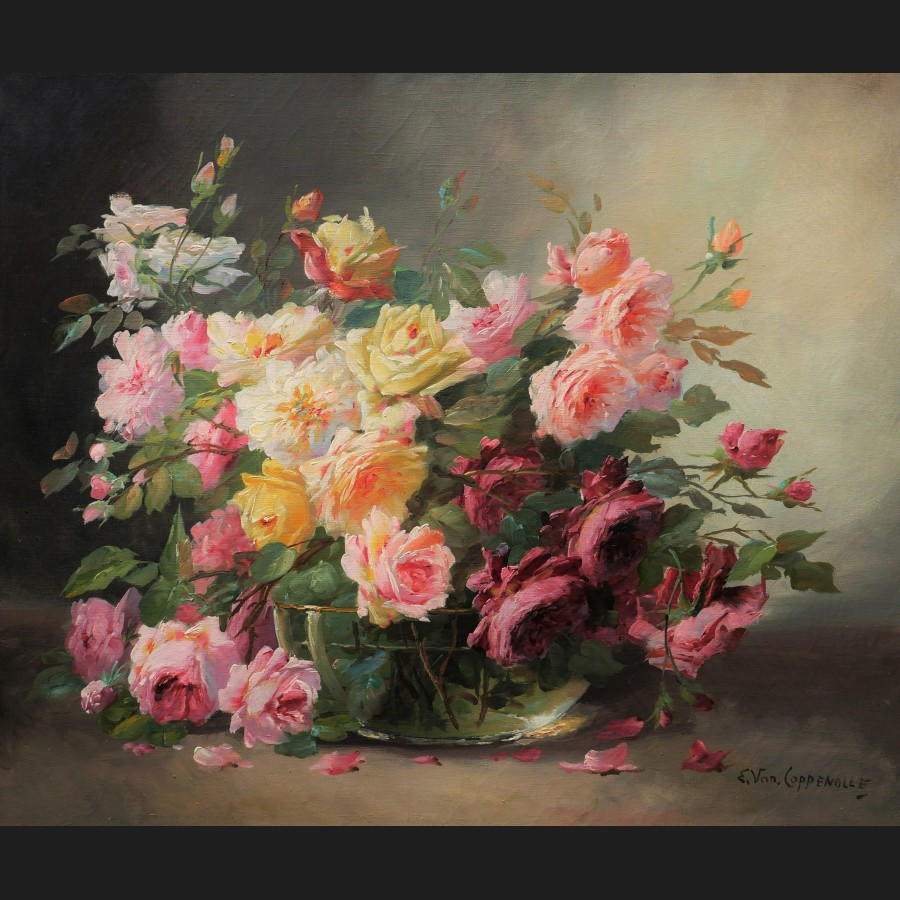 Edmond VAN COPPPENOLLE, Panier de roses, tableau