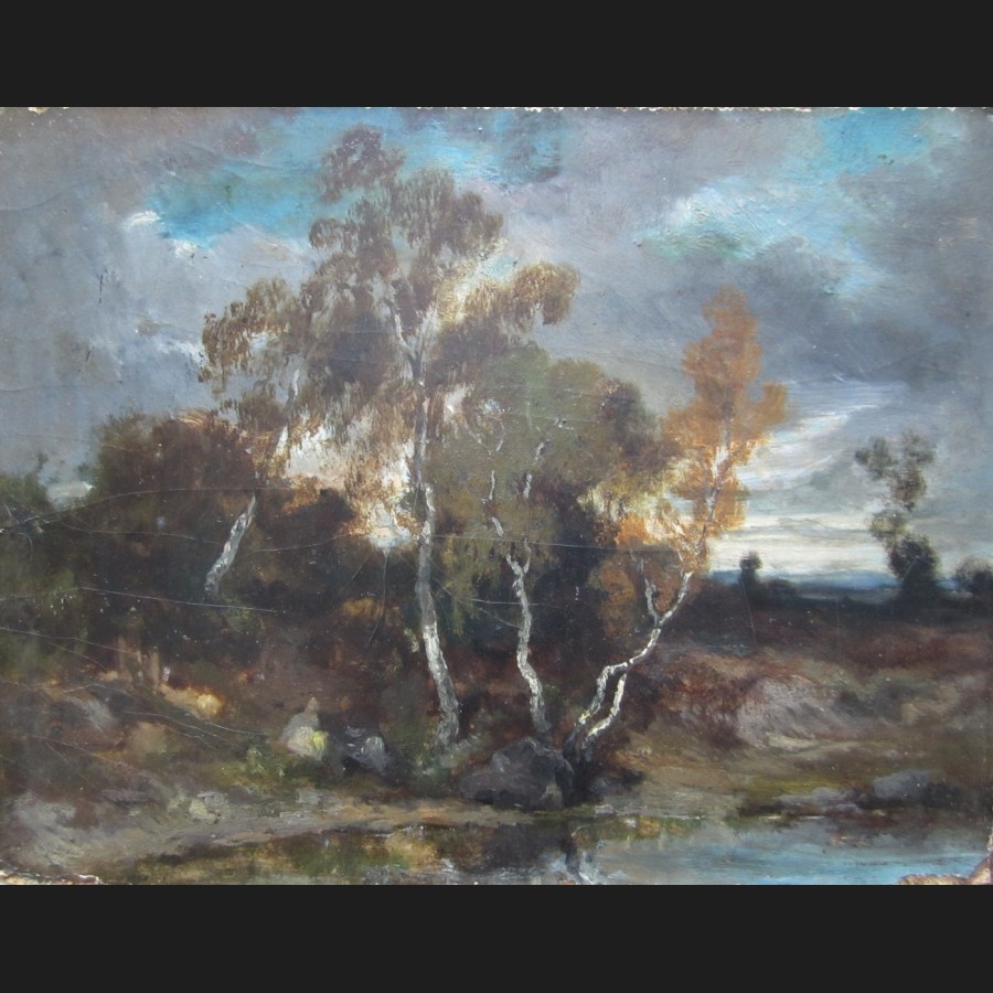 Attribue à Charles Francois DAUBIGNY, Bouleaux au crepuscule, tableau