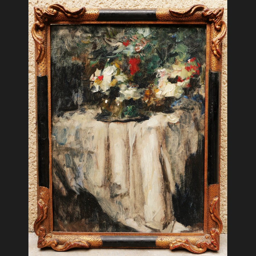 Ecole FRANCAISE de la seconde moitie du XIXeme siecle, Vase de fleurs sur une nappe blanche, tableau