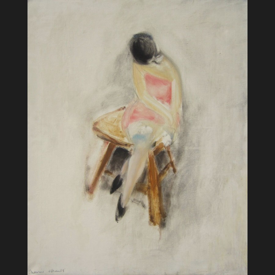 Maurice ESNAULT, Femme en deshabille assise sur un tabouret, tableau