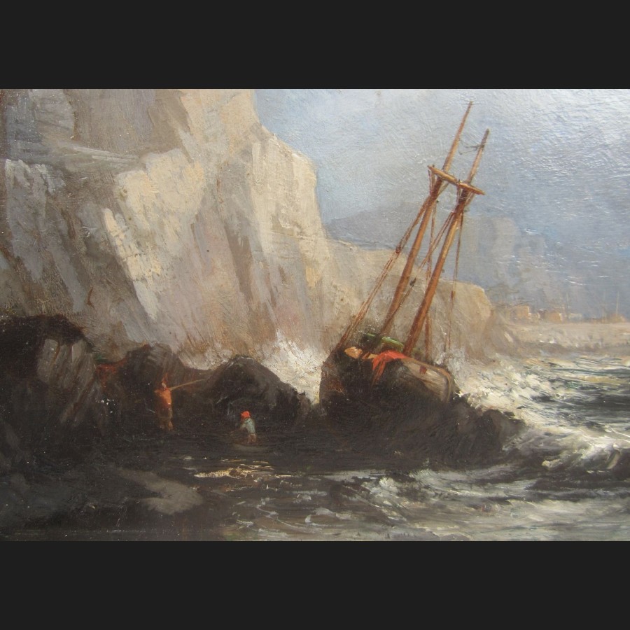 Jean Henri CHOUPPE, Bateau echoue sur une cote rocheuse, tableau