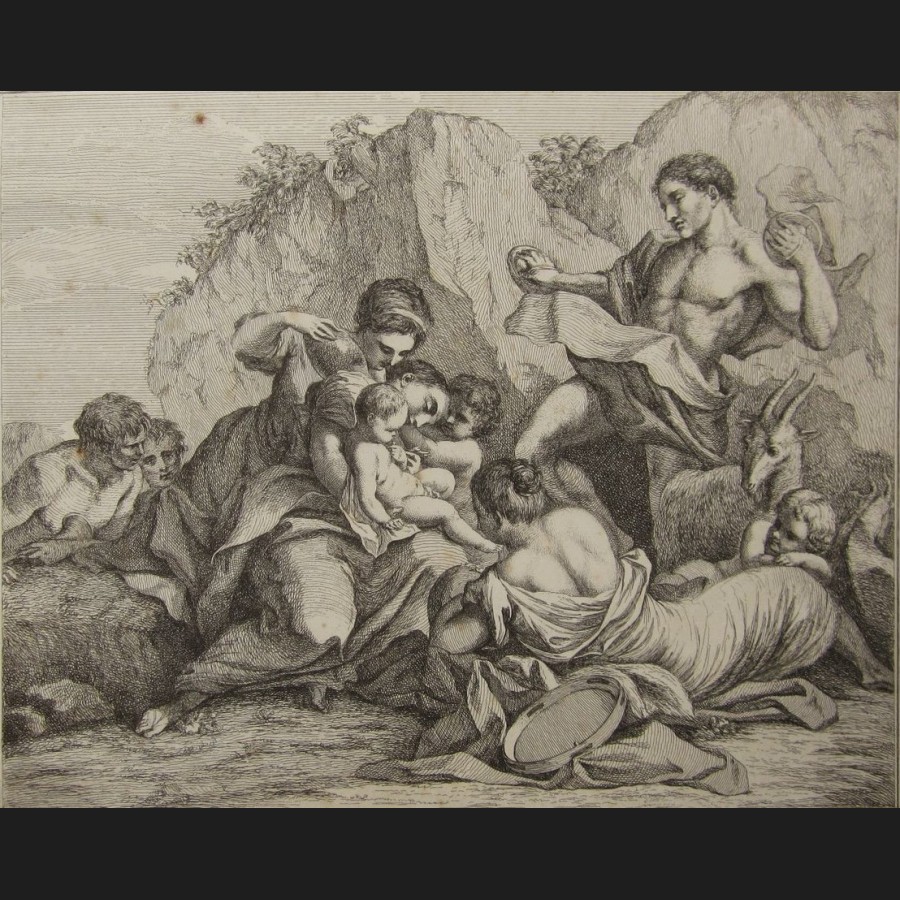 Johann Gerhard HUCK, SELCKE et BILLINGER, d'après Antonio BALESTRA, L'éducation de Jupiter, gravure