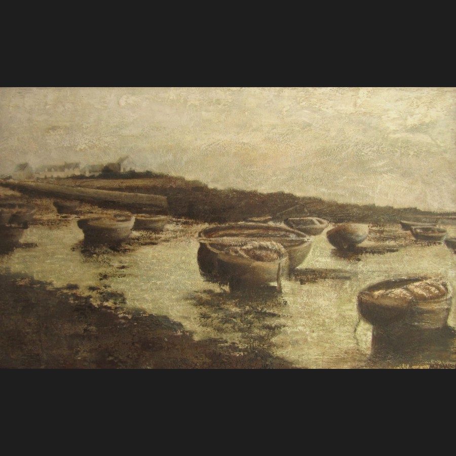 Marie-Jacques MASSOL, Barques échouées, huile sur toile