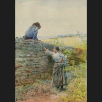 Louis BENTABOLE, Paysage côtier animé en Normandie, tableau