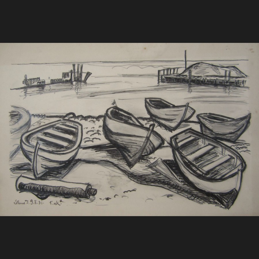 Egon Oskar Von KAMEKE, Barques (faerings) en Norvège, dessin