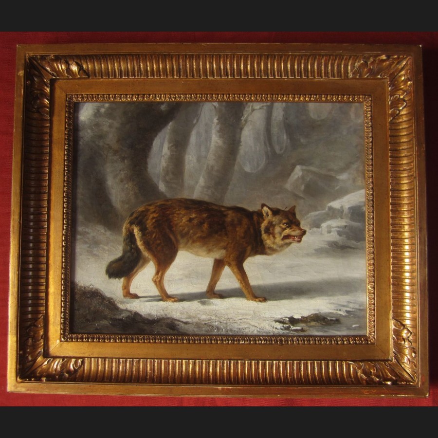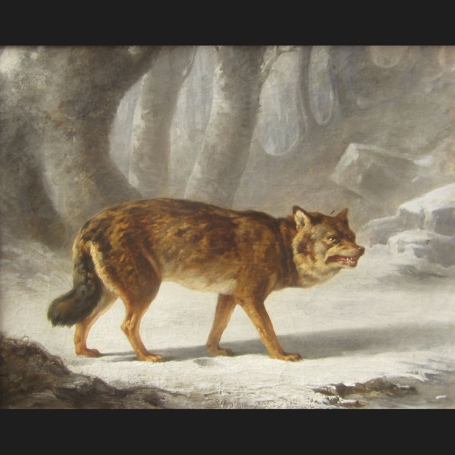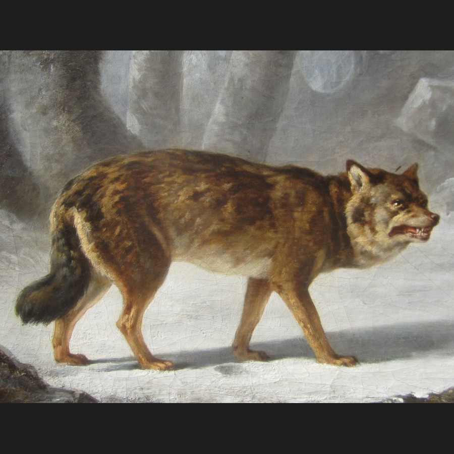 Louis Léon Nicolas VERREAUX (1814-1878)Loup dans la forêt en hiverHuile sur toileSigné en bas à gauche L. Verreaux32,5 x 40,5 cm