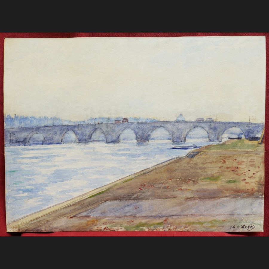 Charles de ZIEGLER, Le Pont de la Guillotière à Lyon, aquarelle