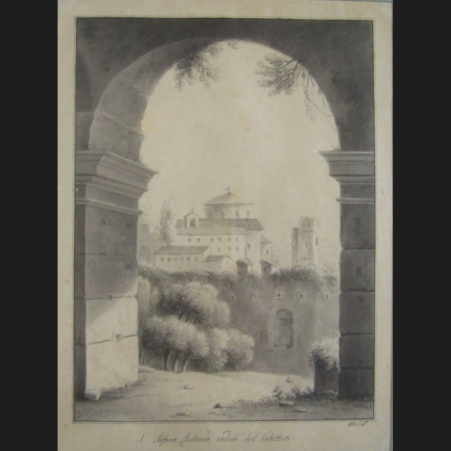 Situé en bas au centre S. Stefano Rotondo veduto dal Colosseo, signé en bas à droite aldini d.