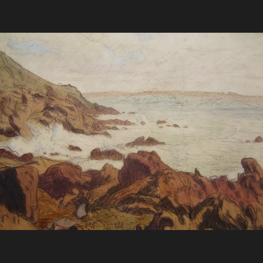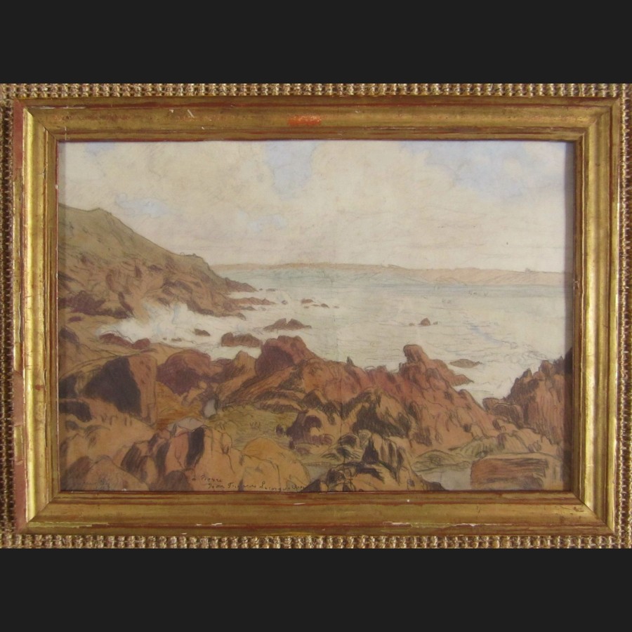 Charles Victor GUILLOUX, Côte rocheuse en Bretagne, aquarelle