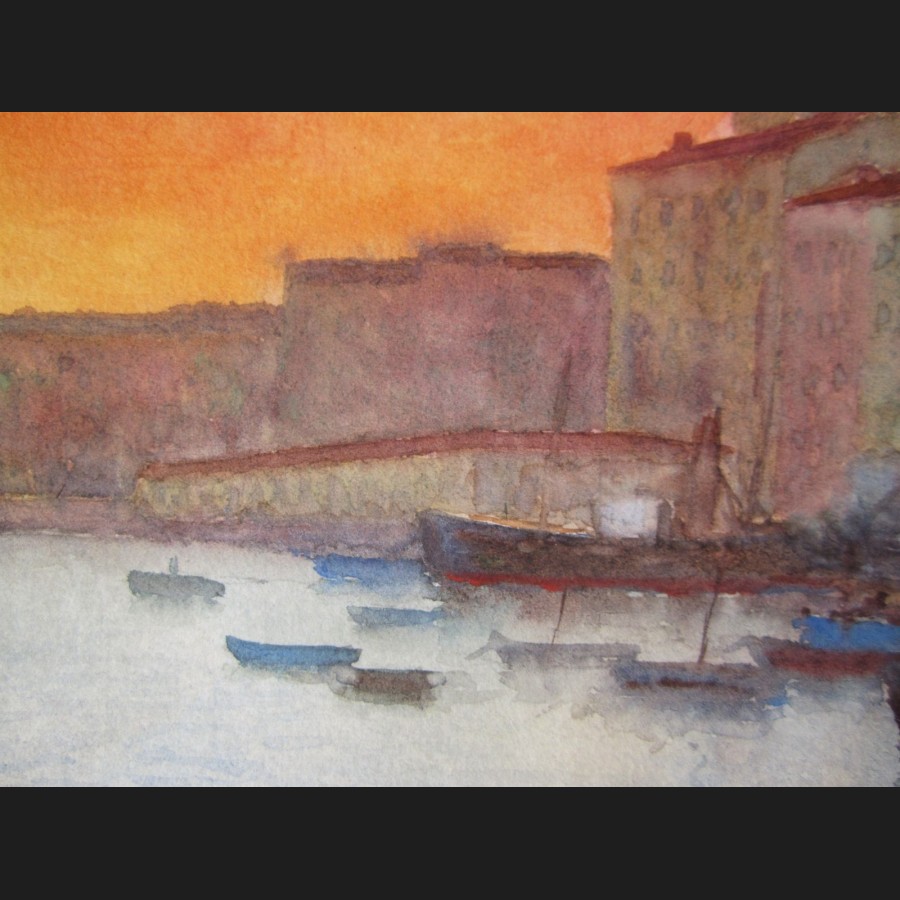 Henry Marius Camille BOUVET, Le port de Marseille, aquarelle
