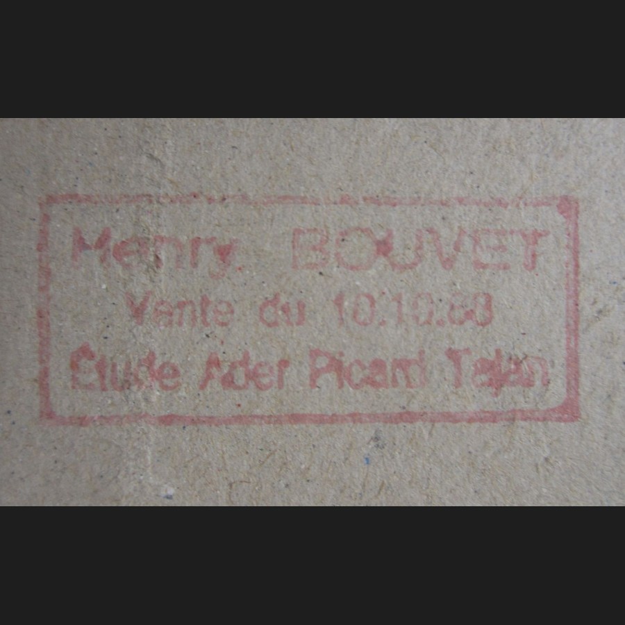 Cachet au revers du carton de fond HENRY BOUVET / Vente du 10.10.89 / Étude Ader Picard Tajan